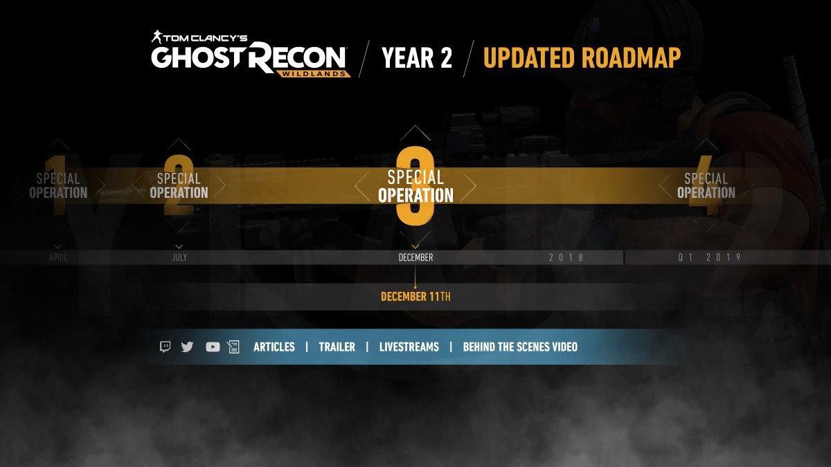 Две предыдущие операции были выпущены в апреле и июле этого года. Первая операция добавила в Ghost Recon Wildlands задание, связанное с Сэмом Фишером из серии Splinter Cell. Вторая оказалась кроссовером с еще одной игрой Ubisoft, Rainbow Six Siege.