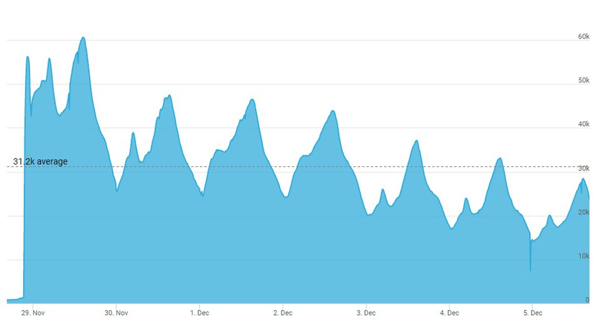 После начала рабочей недели снижение активности продолжилось. 5 декабря пиковый онлайн в Artifact впервые с момента релиза опустился ниже 30 тысяч: одновременно в игре находилось 28477 человек. Это в два с лишним раза меньше показателя 29 ноября.