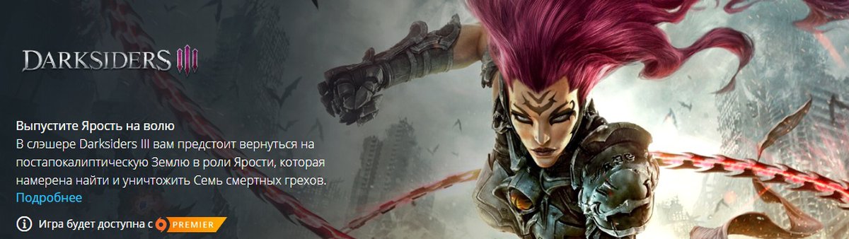 Вышедшая меньше месяца назад Darksiders 3 вскоре может попасть в базу подписочного сервиса Origin Access Premier. Соответствующее объявление появилось на странице Darksiders 3 в магазине Origin; дата появления игры в сервисе не называется.