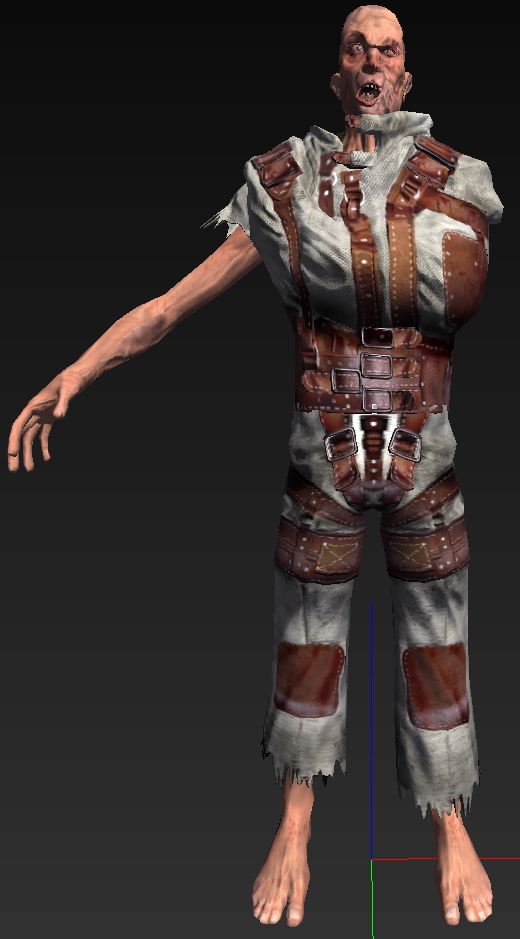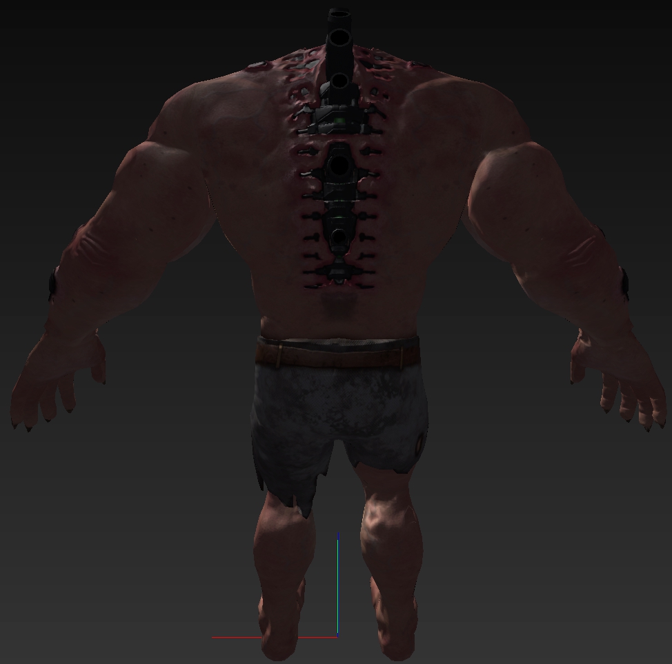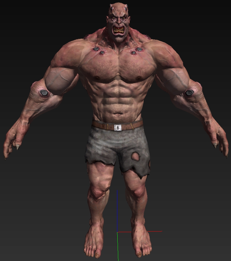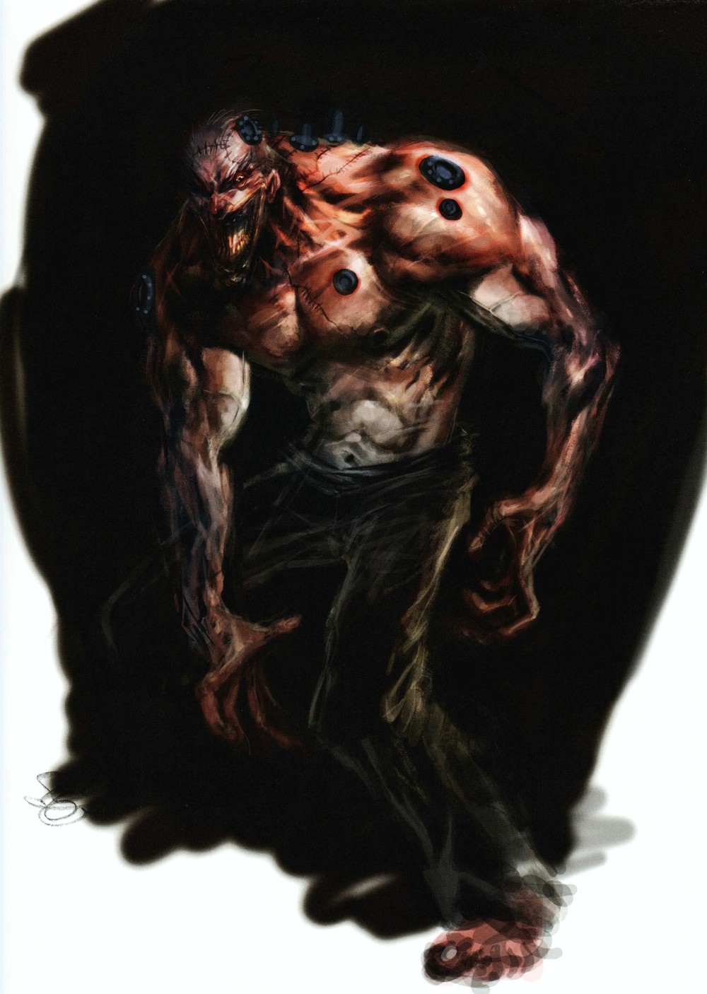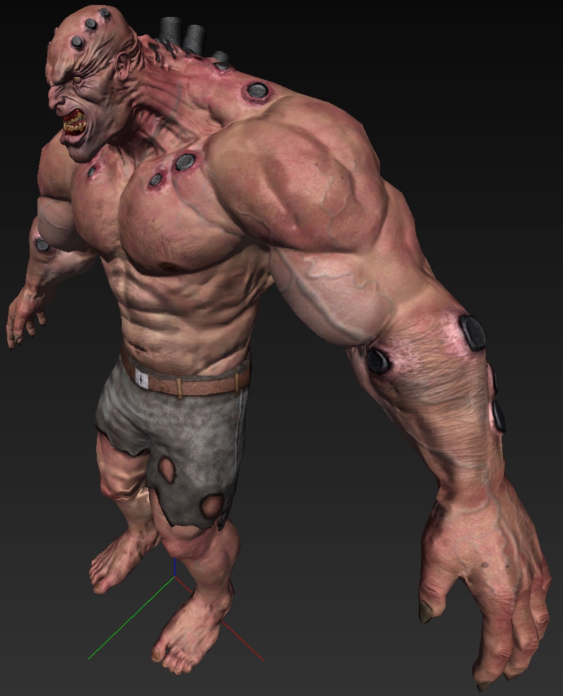 Однако такой босс был бы ну так себе, не представлял угрозы бы вообще. Поэтому решили добавить мускулатуру. Вторая версия превратила его в лысого качка. Хотя откуда взялись шрамы и трубки, мне так и неясно. Неужели это не всё то, что от нас скрыли разработчики?