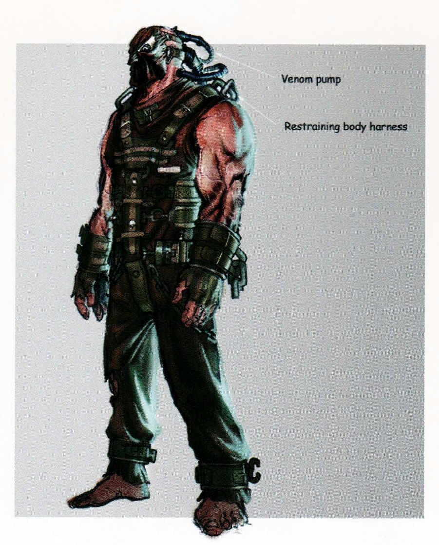 Бэйн был вооружен не только кулаками, но и металлическими кастетами. Менялись маски, и даже контейнер с титаном ограничивался одной трубкой. На ранней версии, совсем ранней, Бэйн был больше похож на человека.