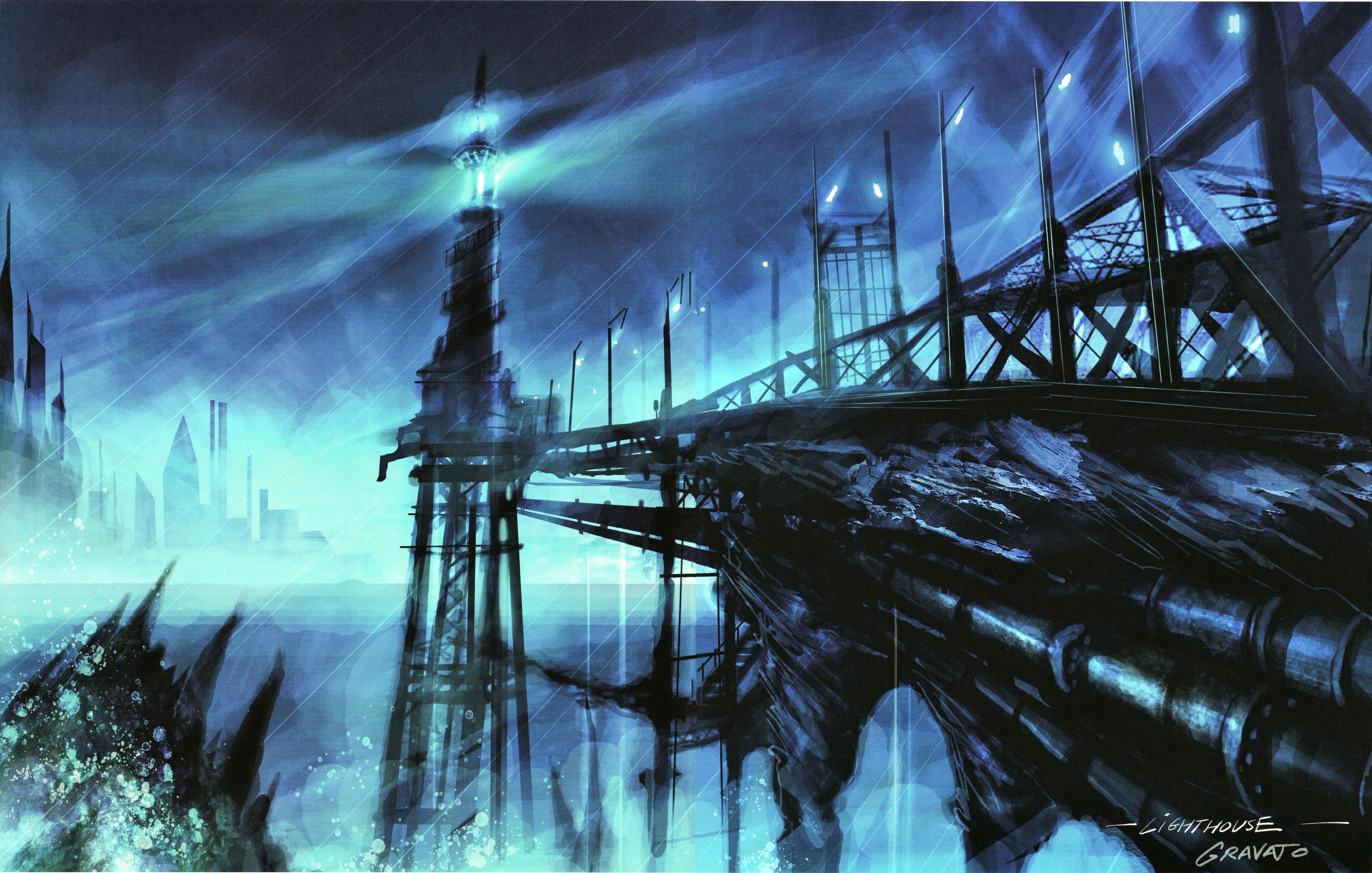 Смешно, но маяк с концептами засветился и в самой игре: как модель дальнего вида и в вырезках газет в кабинете Харлин Квинзель.