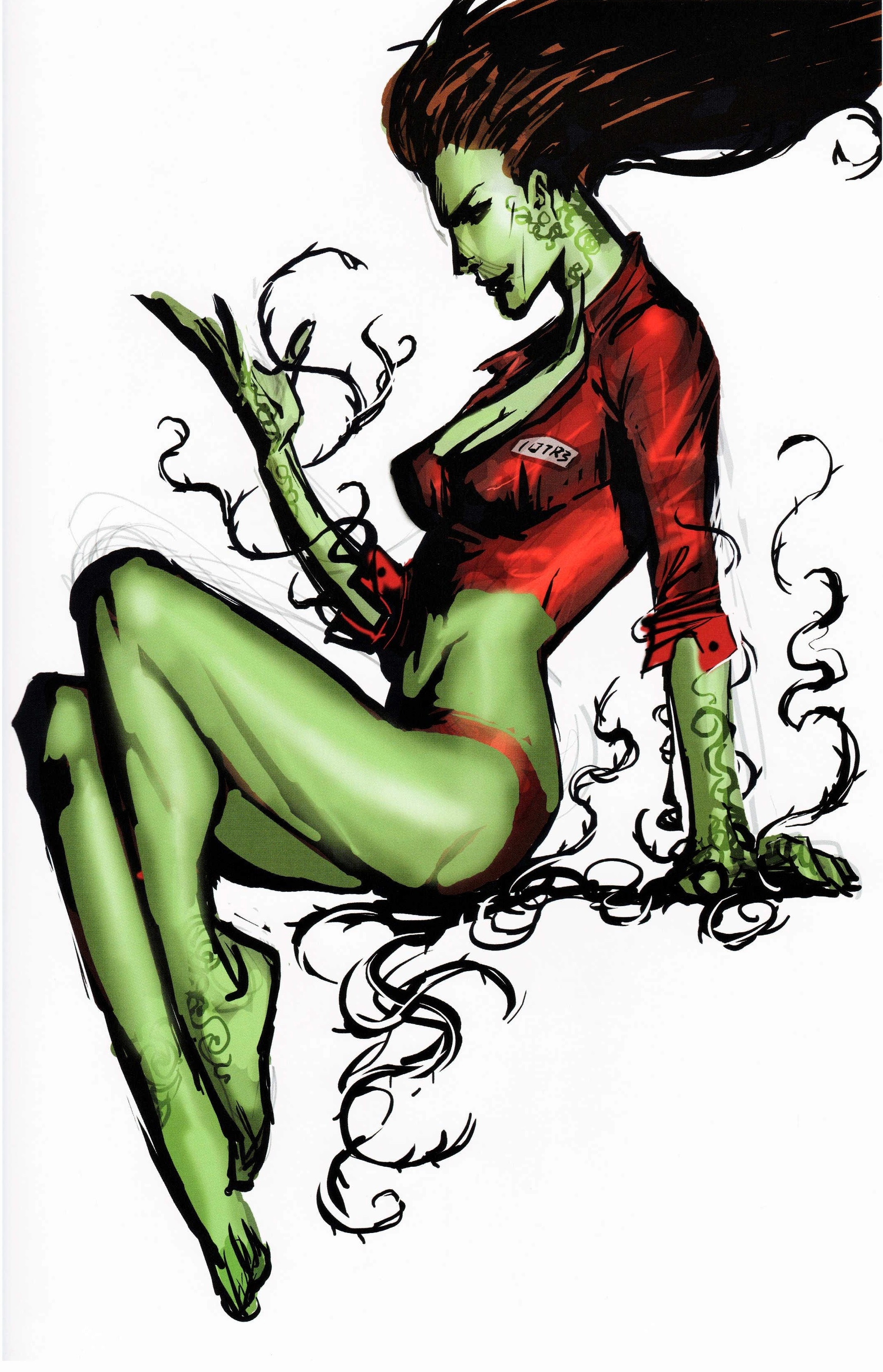 Переходим снова к прекрасному полу. Памела Лилиан Айсли, более известная как Ядовитый Плющ. У дизайнера, как и у меня, был фетиш на рыжих особ, поэтому, не церемонясь, самую первую версию Плюща выкатил полностью голой, прикрыв листьями прелести дивы, правда, настолько тонко, насколько возможно. А распущенные волосы заплёл в косу.