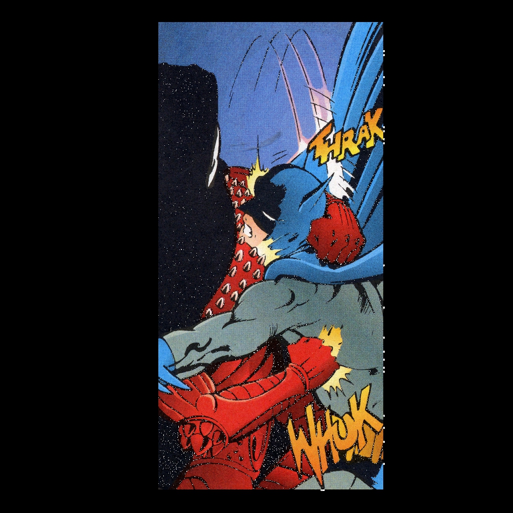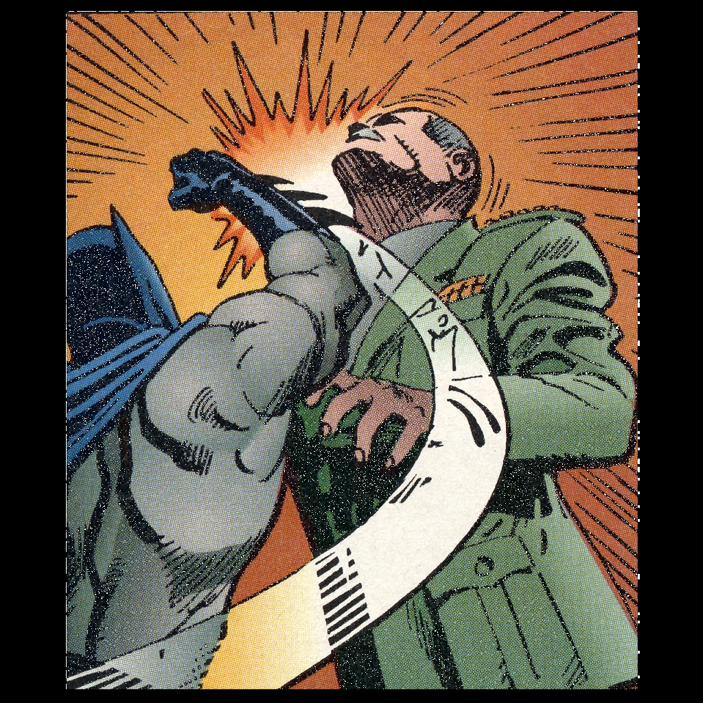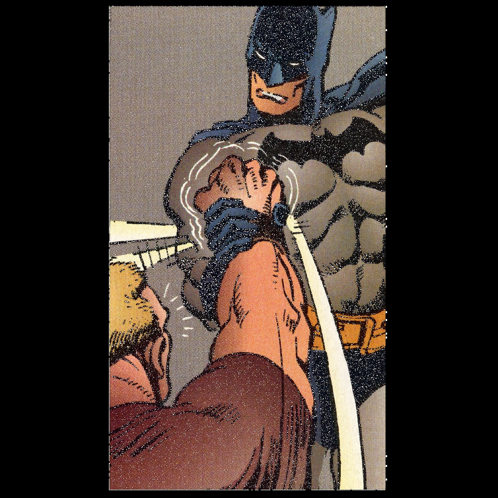 1) Джокер вырывается из рук охранников, не падая на колени и ударяя головой, он просто ударяет локтем в зубы охраннику.