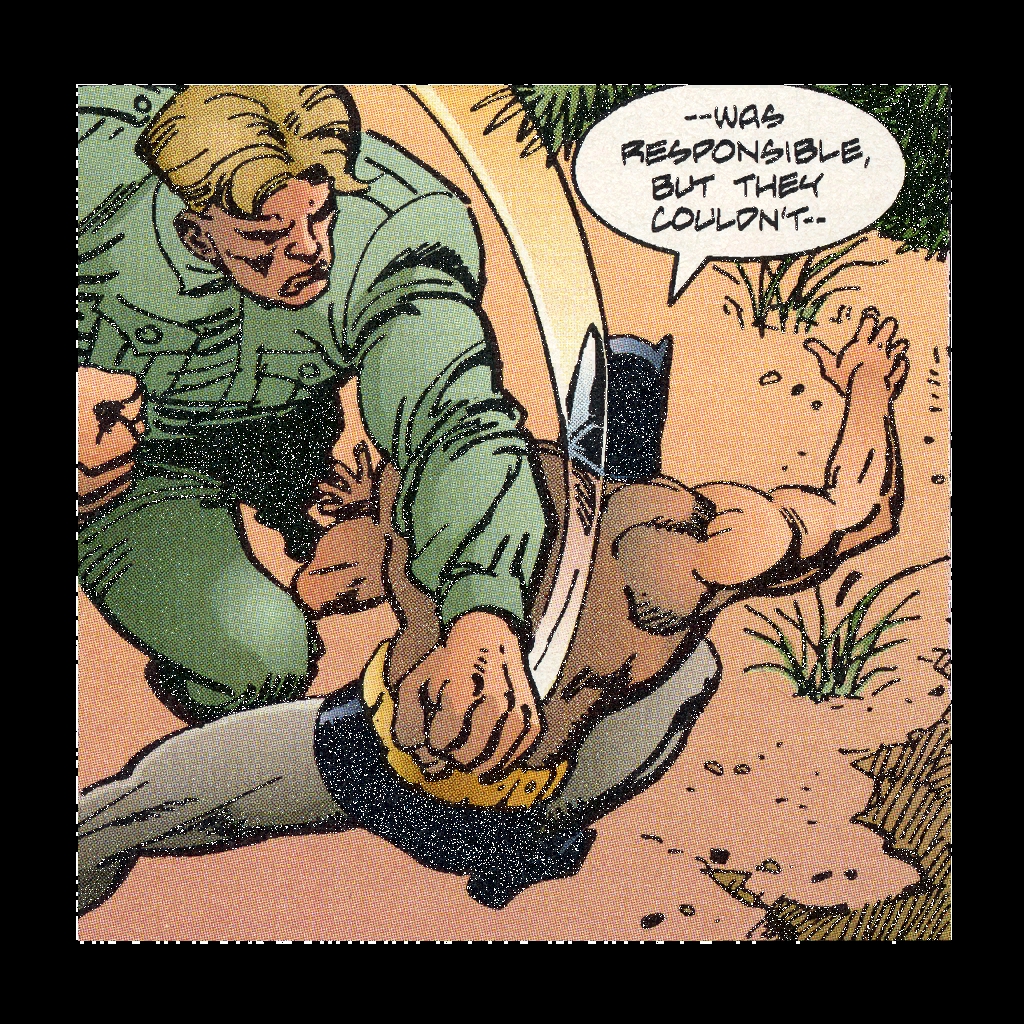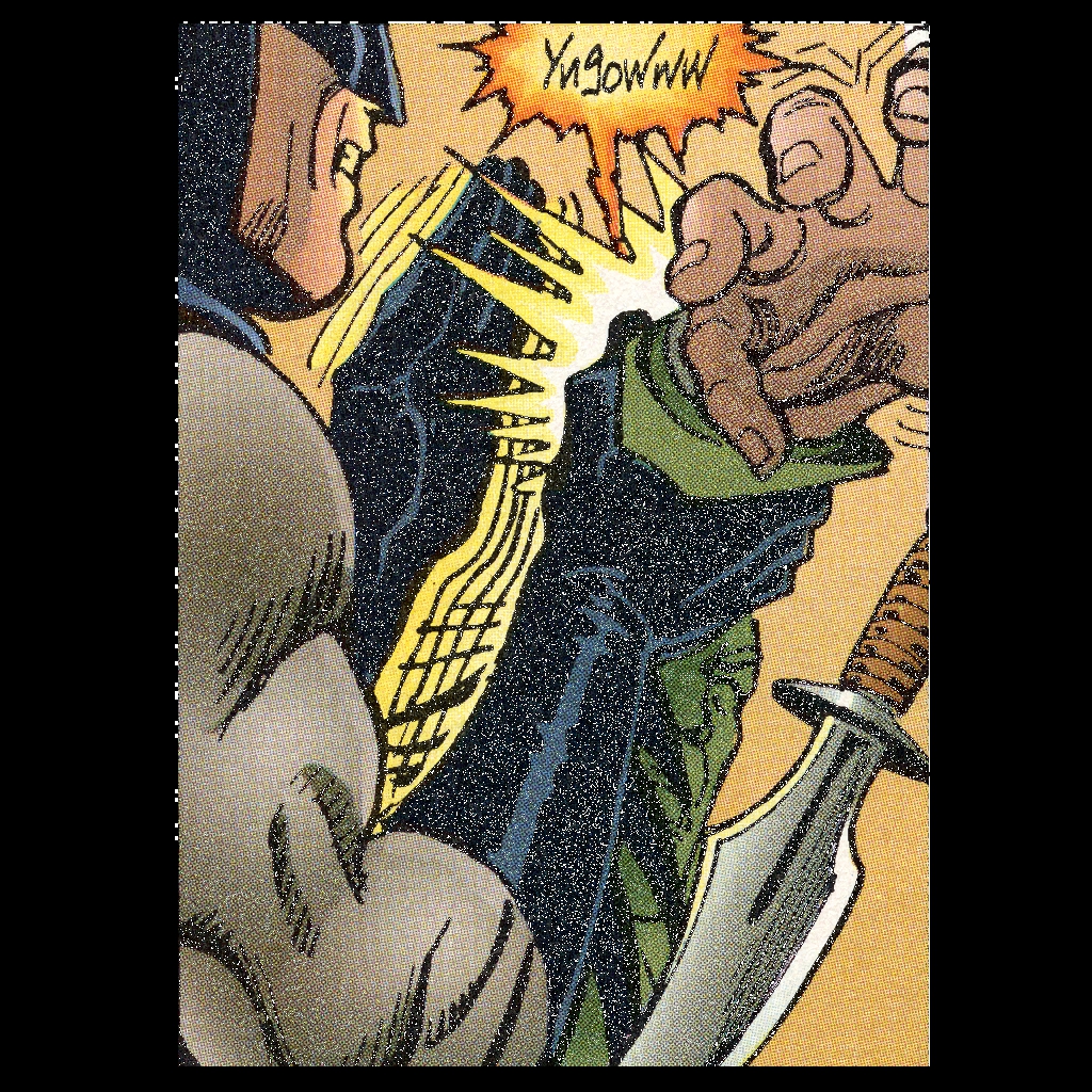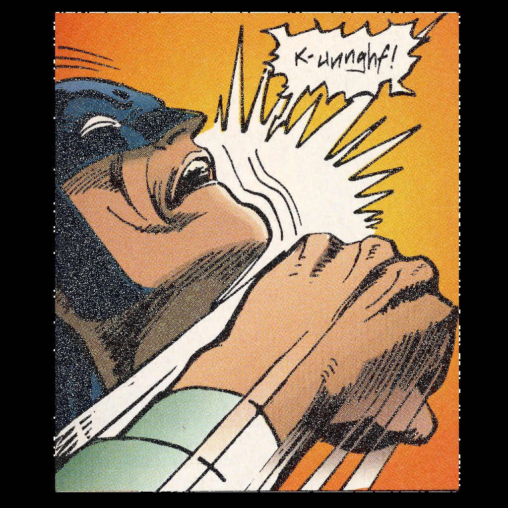 1) Джокер вырывается из рук охранников, не падая на колени и ударяя головой, он просто ударяет локтем в зубы охраннику.