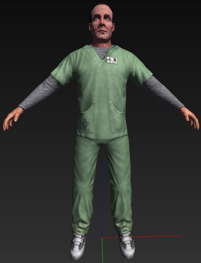 Что касается охраны лечебницы, то тут всё скудно, и в прототипе от 11 декабря 2007 года можно увидеть охранников в медицинских масках. А сама униформа помечалась большой буквой «А» на рукавах.