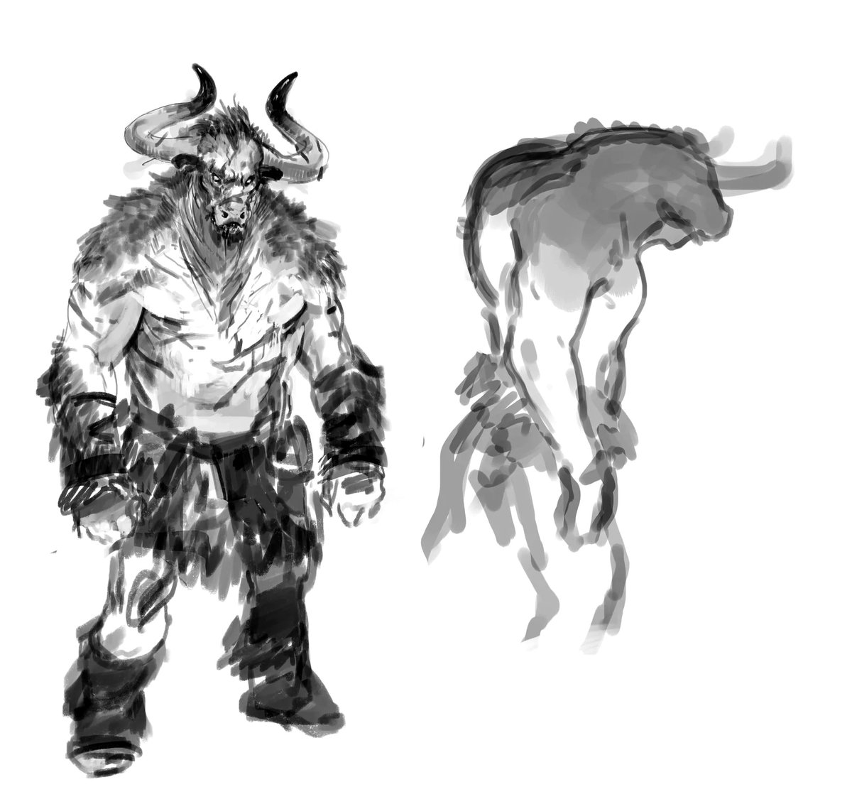 Минотавра решили сделать белым в качестве отсылки к истории происхождения чудовища. В греческой мифологии царь Минос отказался приносить в жертву Посейдону величественного белого быка и пожертвовал другим животным. Посейдон разгневался и заставил жену Миноса влюбиться в белого быка; так появился Минотавр.