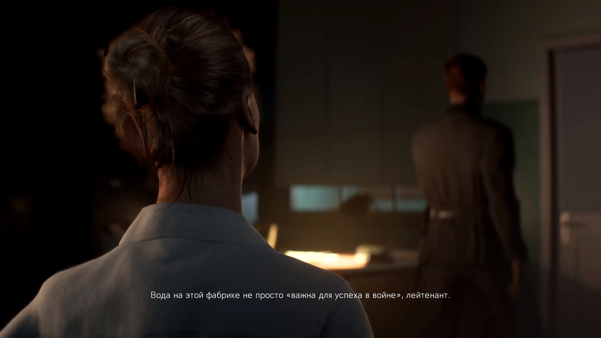 Каждая глава повествует историю разных персонажей. Во второй главе нас ждёт сюжет за даму, которая исказит все исторические события в корне. По сюжету данной главы, мы должны, играя за девушку, уничтожить чуть-ли не половину третьего рейха, уничтожить все наработки тяжёлой воды (используется для производства ядерного оружия), а так же спасти нашу мать, которую допрашивает отец нашей главной героини, сражающийся на стороне немцев. Местная Санта-Барбара.