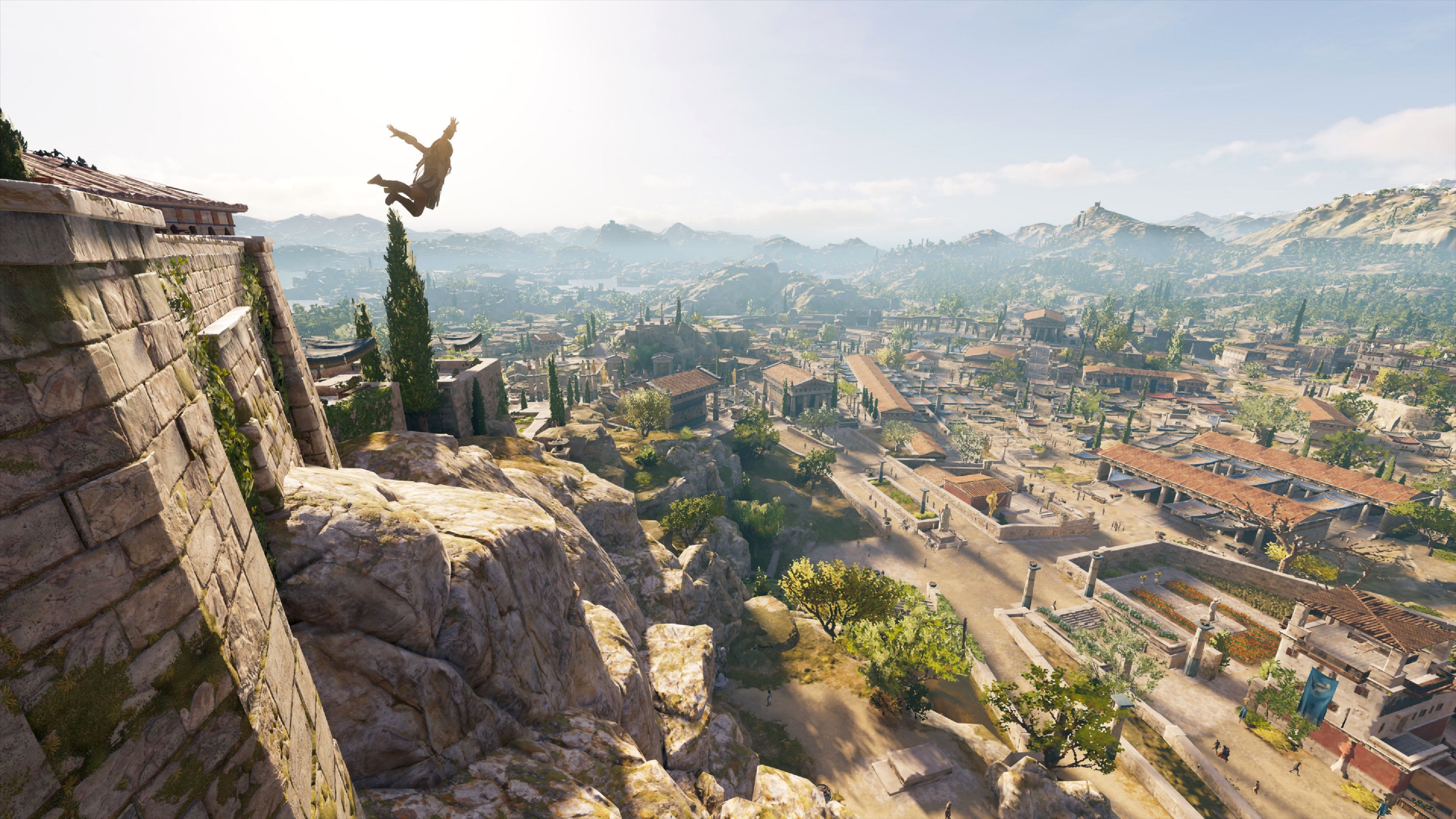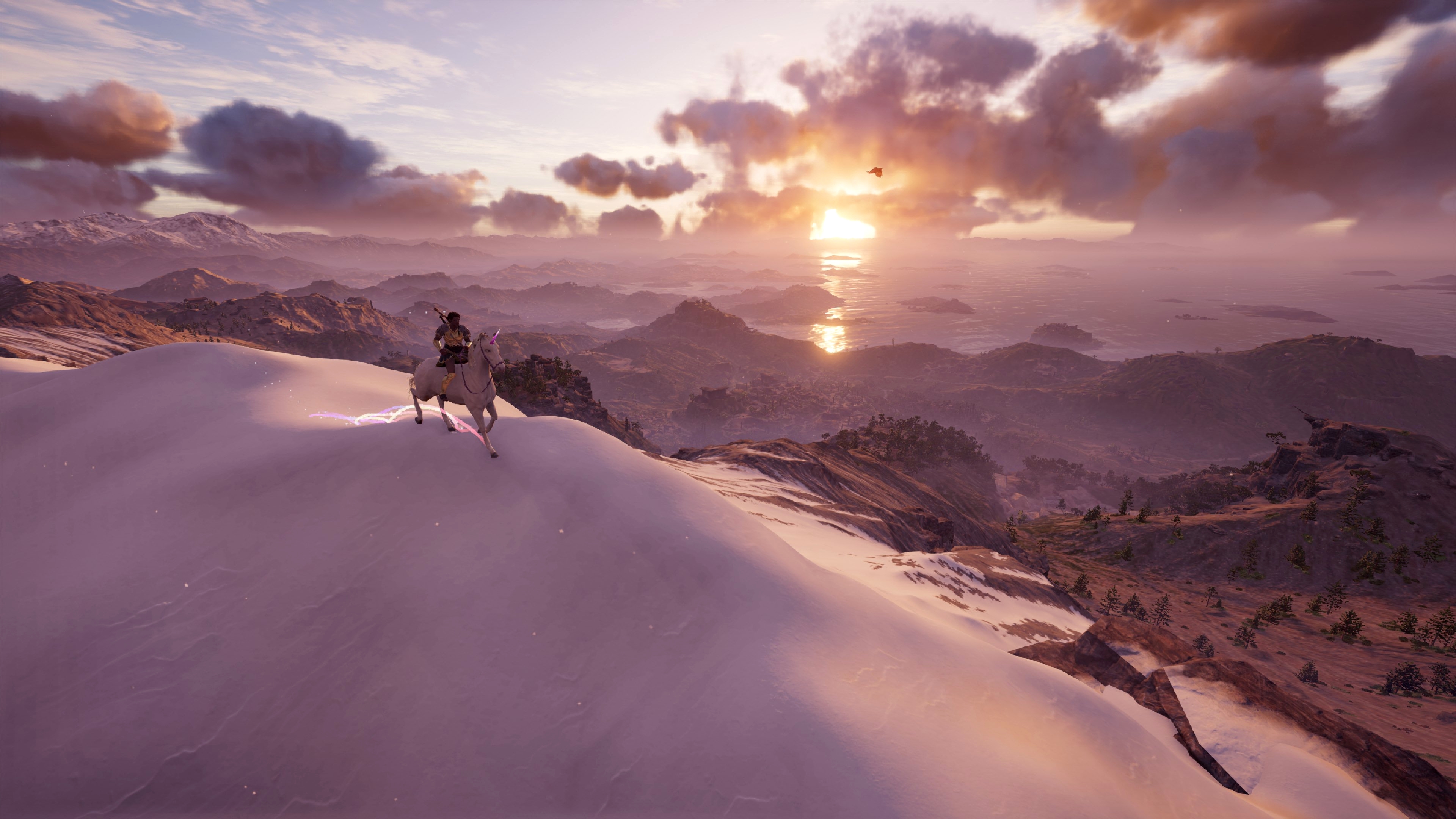 Жаль, что дальше Юби были верны себе. Огромный, нет ОГРОМНЫЙ мир, который абсолютно пуст и делать в котором тупо нечего. Да, красивый, пейзажи они научились делать уже очень давно, но на этом и пару лет назад уже никто никуда не выезжал. Такой размах несет за собой и расстояния, которые надо преодолевать на не самом быстром транспорте в мире, что опять-таки раздражает. Слишком много побочного контента, который сделан настолько спустя рукава, что проходишь мимо даже не задумываясь. Растягивает всю резину еще и конченный автолевел, которые гореть в аду должен, ибо сил нет никаких. Из-за него полностью сломан стелс и из-за него нахрен не нужен ни один лук в игре. Просто потому что ваншотнуть в голову вам не дадут никого. Пока вы не прокачаетесь, что здесь сделать ооооооооочень не просто. Если вы не задонатите, конечно. Ну и баги. Багов очень много. До неприличия много. Багаут76 все еще отхватывает, хотя Одиссея выглядит не многим лучше, просто в ней нет мультиплеера.