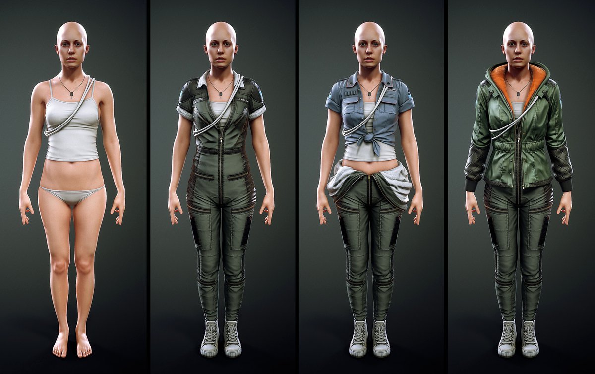 В Creative Assembly не планировали сделать Аманду лысой — просто у Басби отсутствует часть файлов. Текстуры одежды и снаряжения тоже старые: в финальной версии Alien Isolation использовались другие материалы.