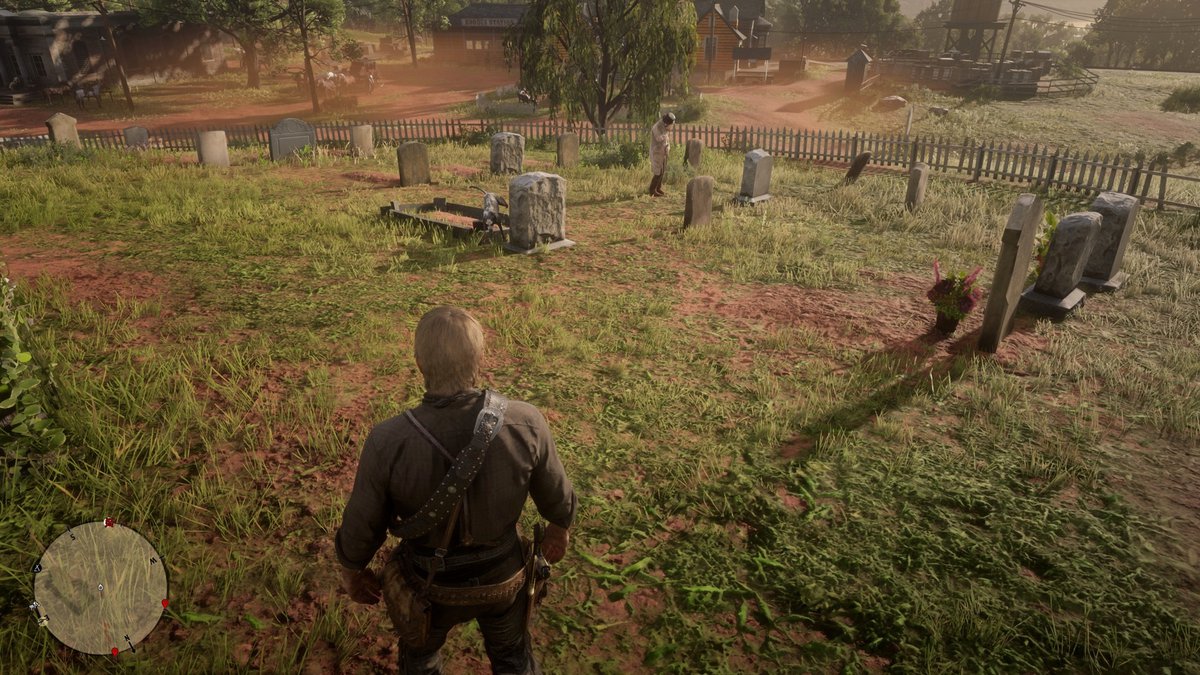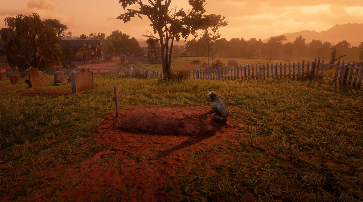 Другая мелкая деталь связана как раз с собакой. Скорее всего это случайное событие или анимация, удачно совпавшая с местом: на кладбище Роадса реддитор Hupflupper заметил местную версию Хатико: собака сидит у свежей могилы своего владельца.