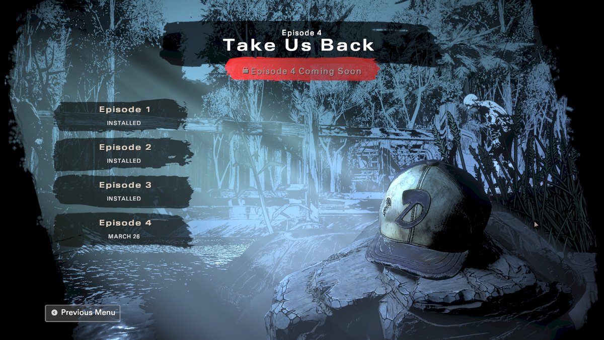 В главном меню The Walking Dead The Final Season есть полный список эпизодов игры. У четвертого эпизода здесь выводится название и дата: финал истории Клементины будет называться Take Us Back, его выпуск якобы запланирован на 26 марта 2019 года.