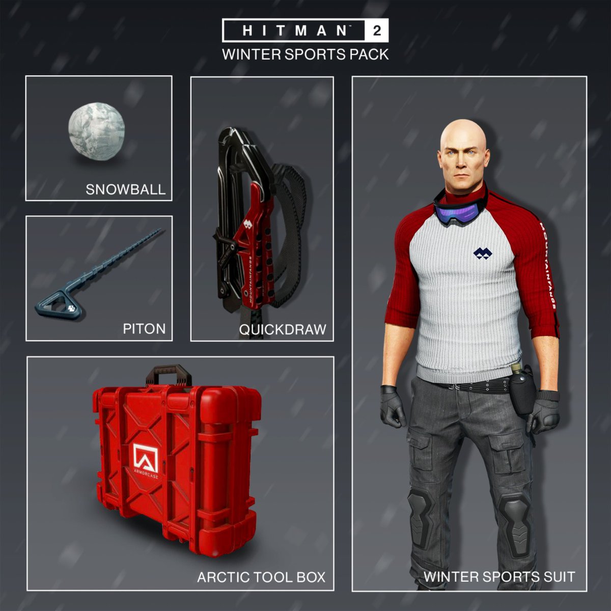 Вместе с фестивалем в Hitman 2 появляется специальный набор Winter Sports Pack, состоящий из снежка, еще одного костюма, специального чемодана и альпинистского снаряжения. Удачное попадание снежком на некоторое время выведет врага из строя, а альпинистское снаряжение можно использовать для устранения противников.