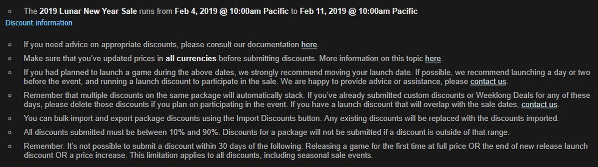 Через несколько часов один из участников группы Steamworks Development все-таки слил даты проведения распродажи. Выяснилось, что акция начнется 4 февраля и будет длиться неделю, до 11 февраля. Это необычно: в прошлом году распродажа длилась всего 5 дней.