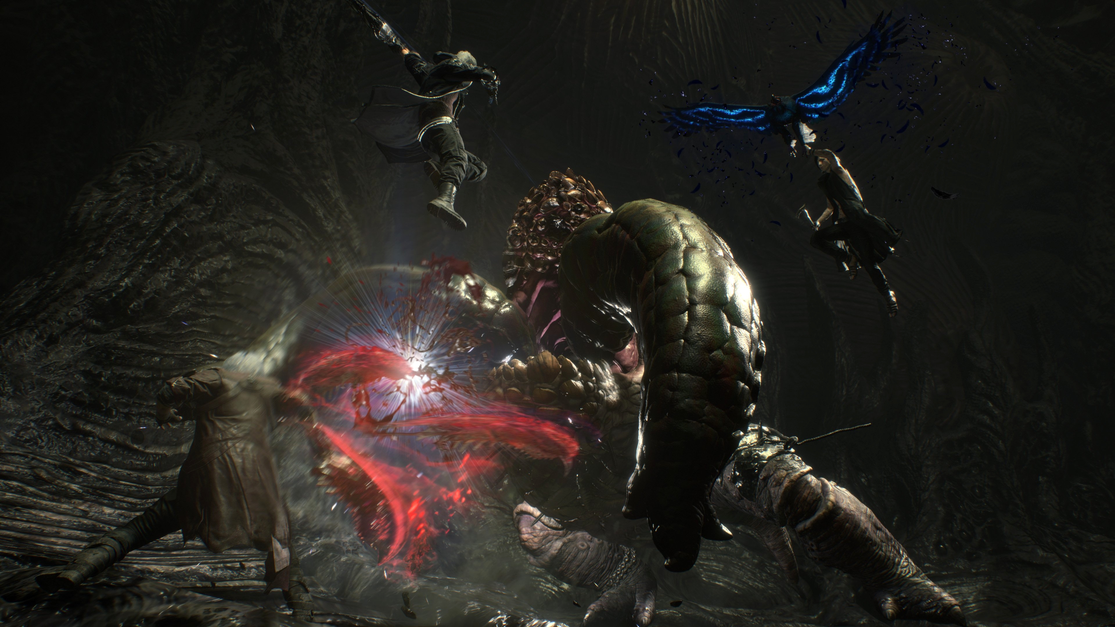Вместе с первыми — и очень положительными — превью Devil May Cry 5 появилась новая подборка скриншотов. В кадр попали все три главных героя игры: Данте, Неро и Ви, специалист по демонам, призывающий пантеру, буревестника и гиганта-Кошмара. Этот демон такой большой, что Ви может передвигаться на его спине.