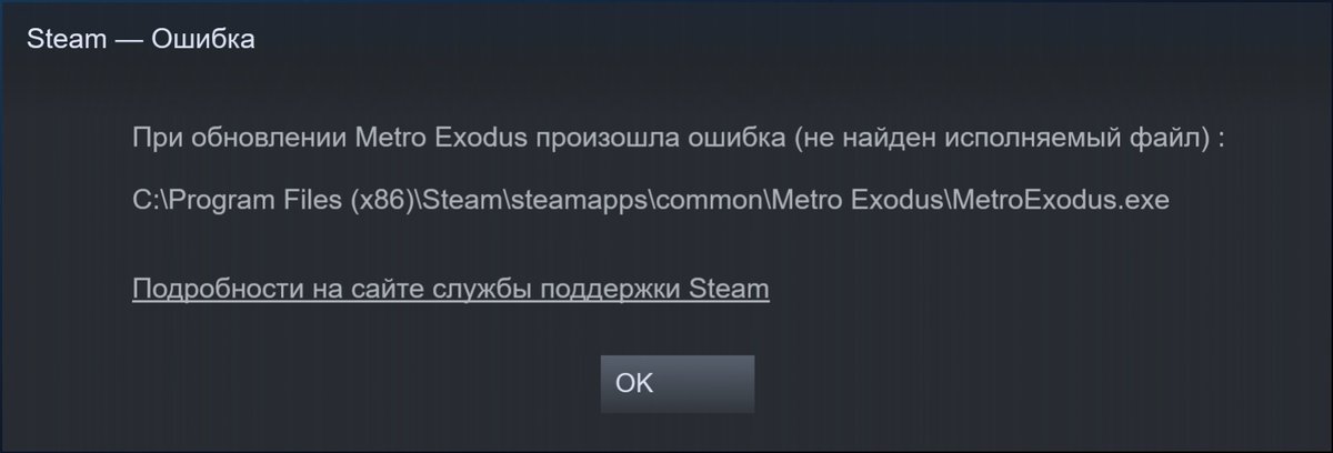 У PC-версии Metro Exodus есть проблема. Некоторые владельцы копий для Steam говорят, что не могут запустить предзагруженную игру: клиент Steam сообщает, что не может найти исполняемый файл MetroExodus.exe. В папке с игрой действительно нет этого файла.