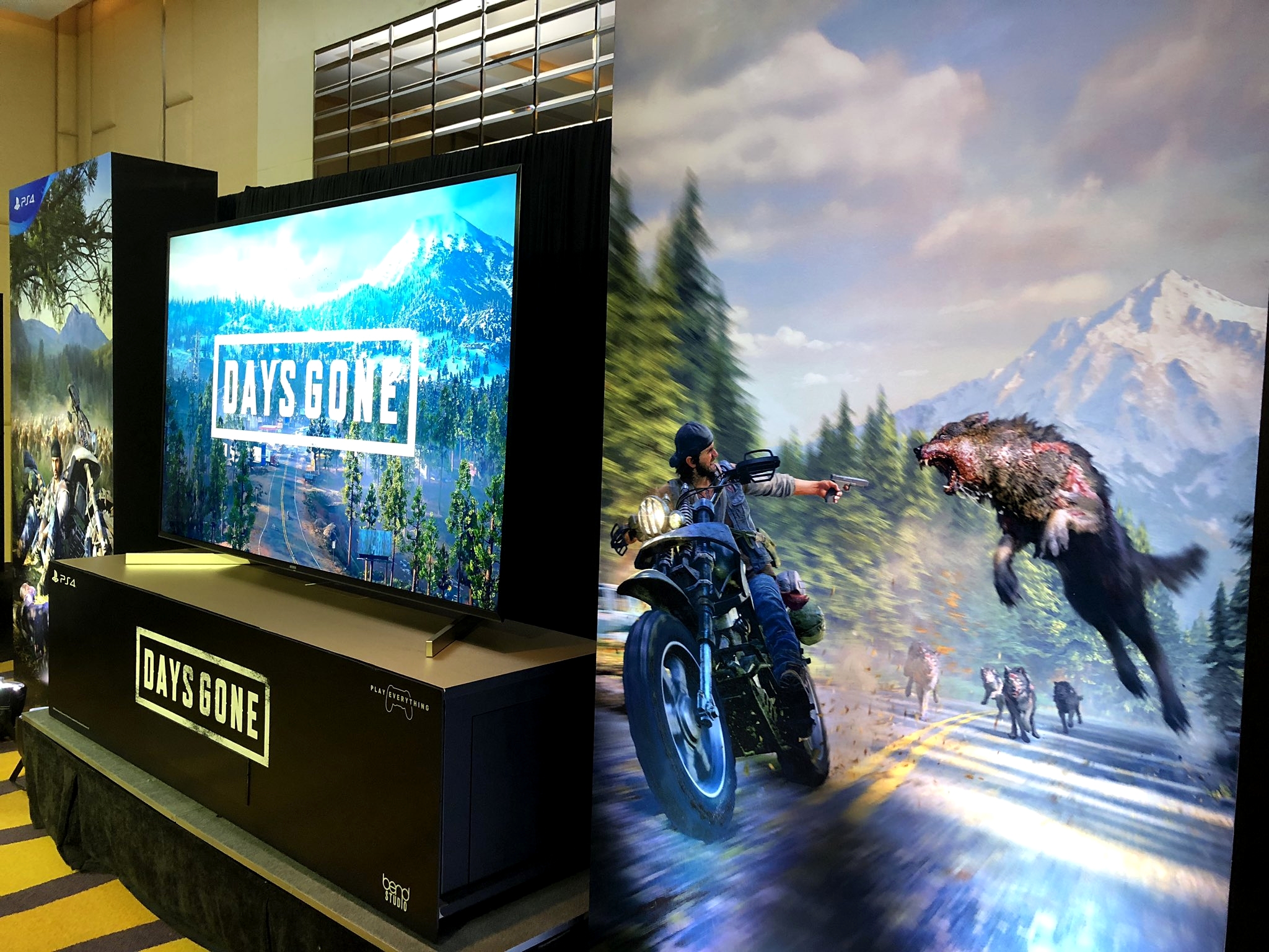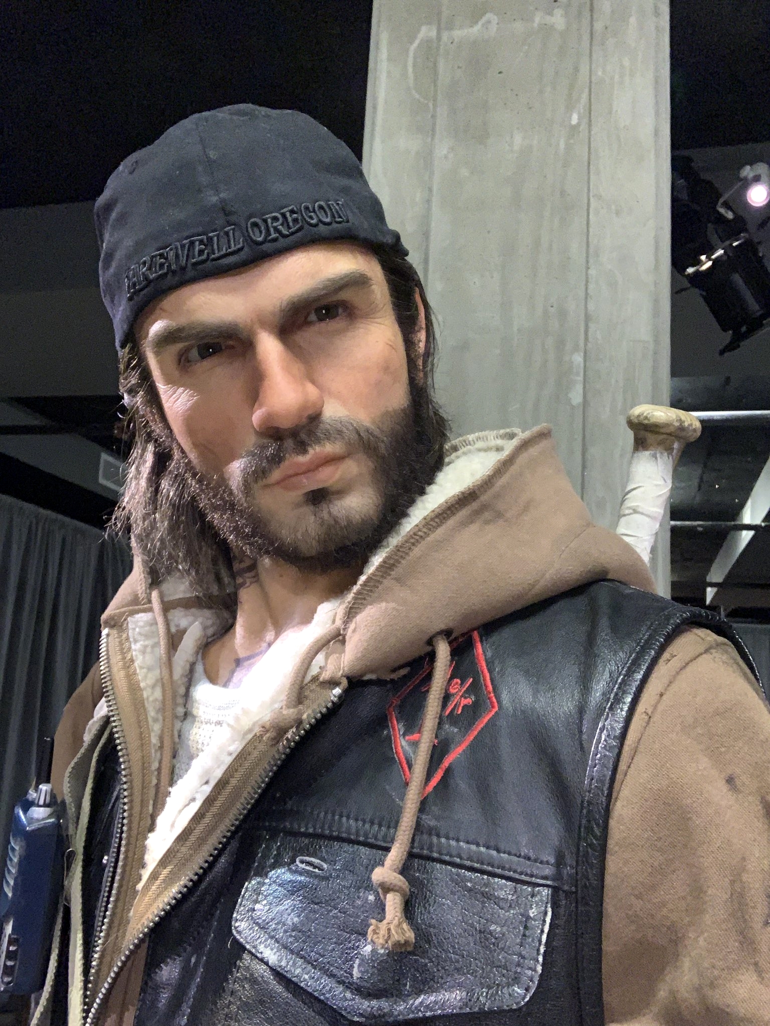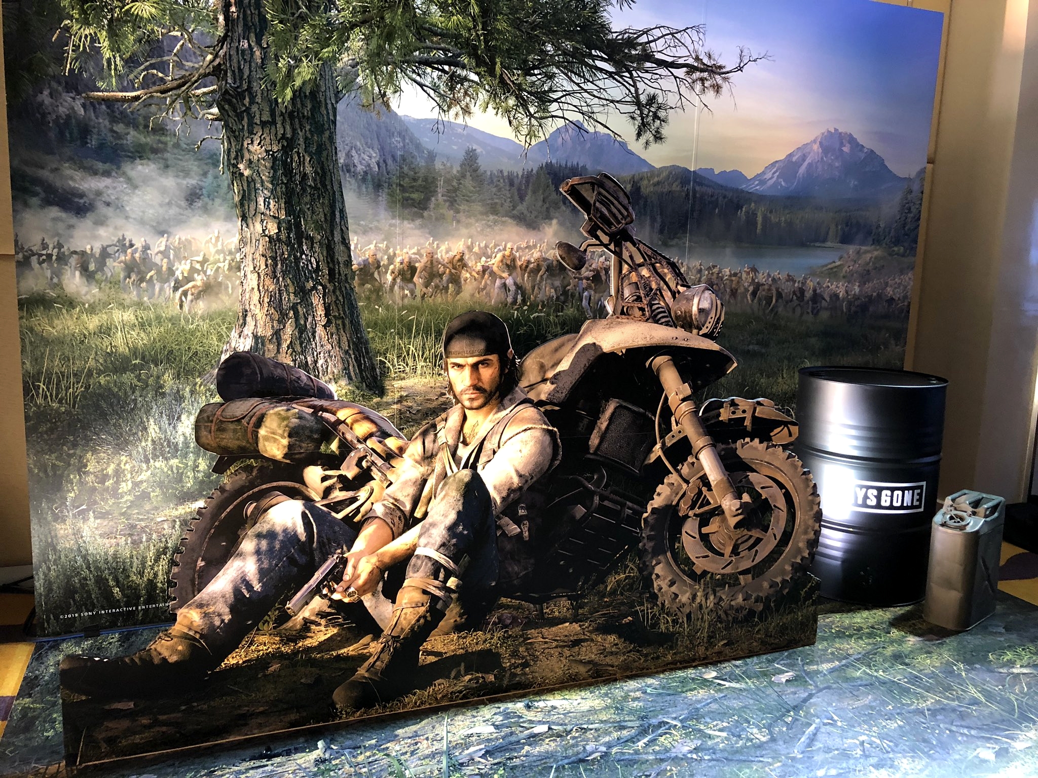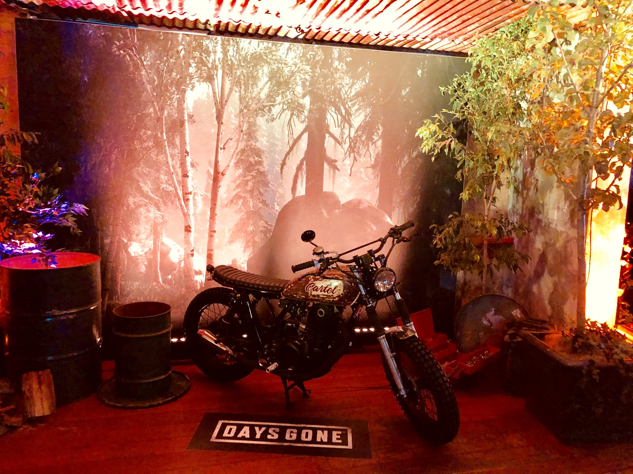 Специально для показа игры разработчики построили несколько мини-убежищ в стиле Days Gone — фрикам рекомендуется держаться подальше. Здесь есть мотоциклы Дикона Сент-Джона, главного героя игры, статуя медведя-зараженного и модель самого Дикона в натуральную величину.