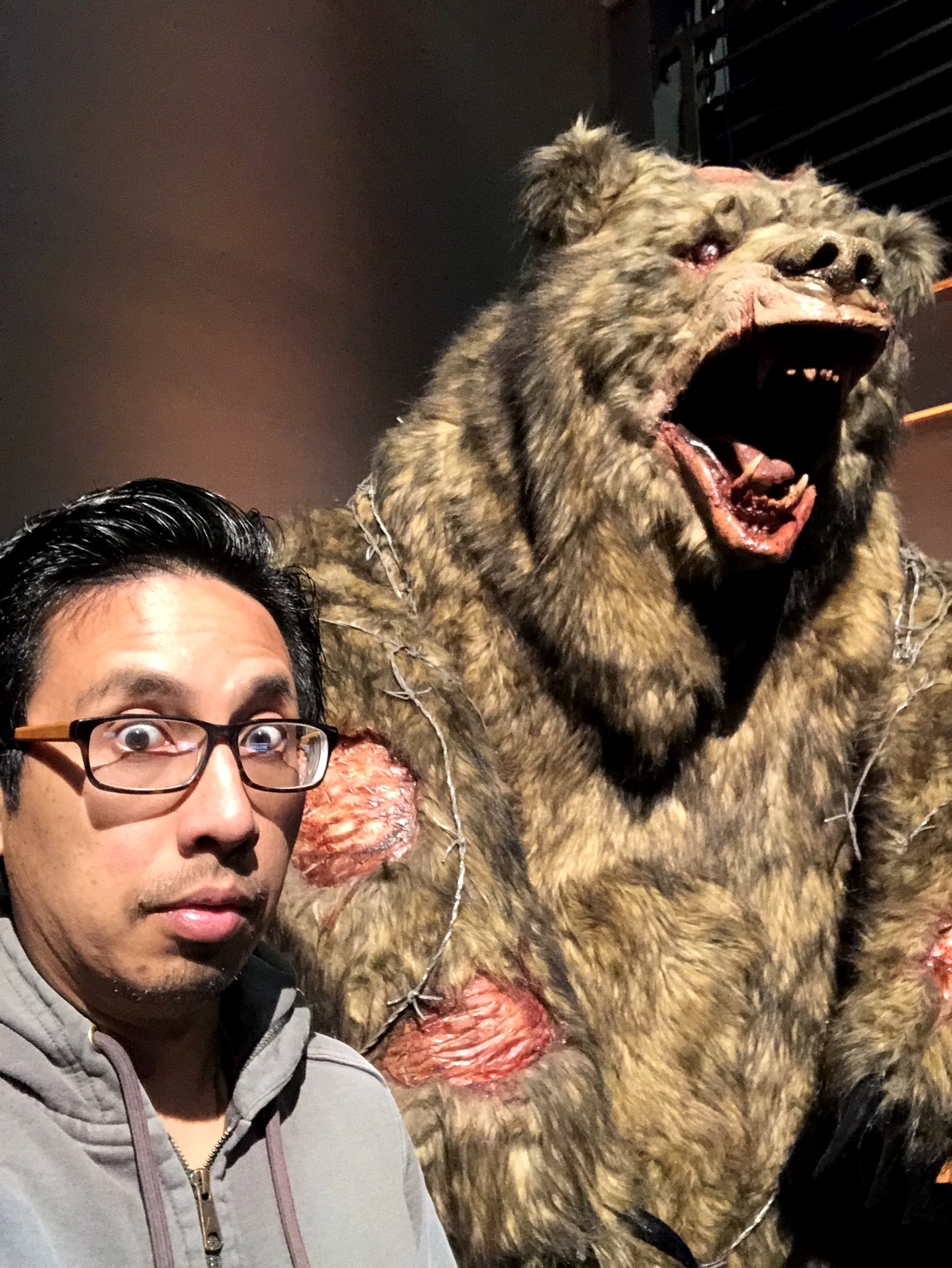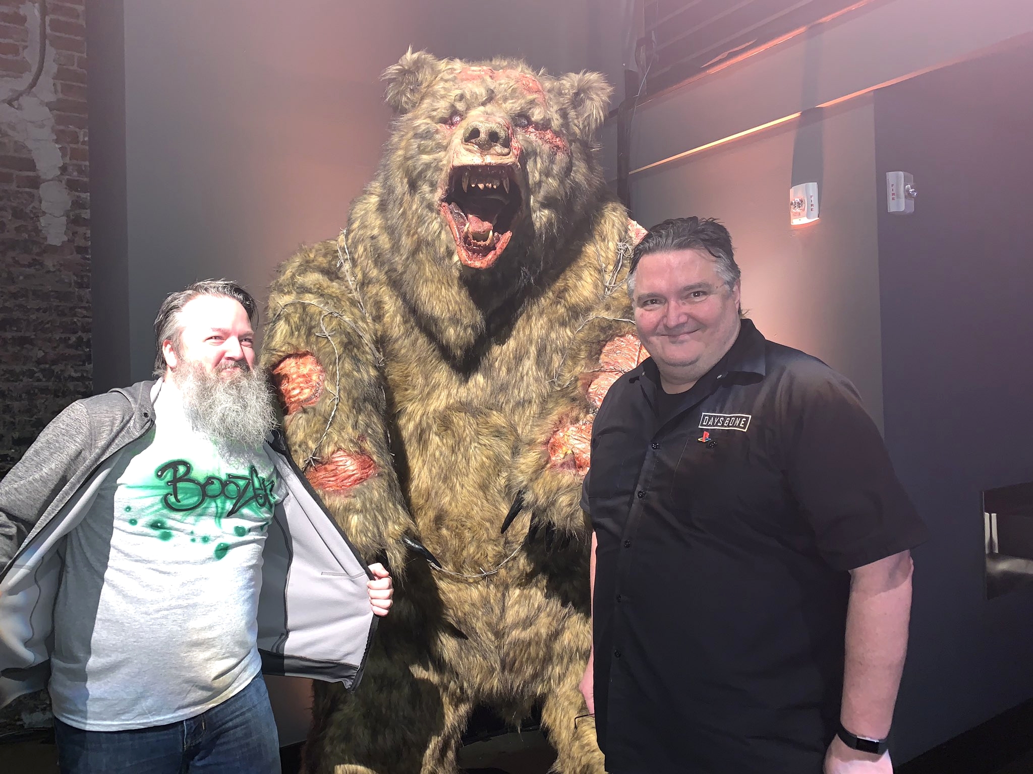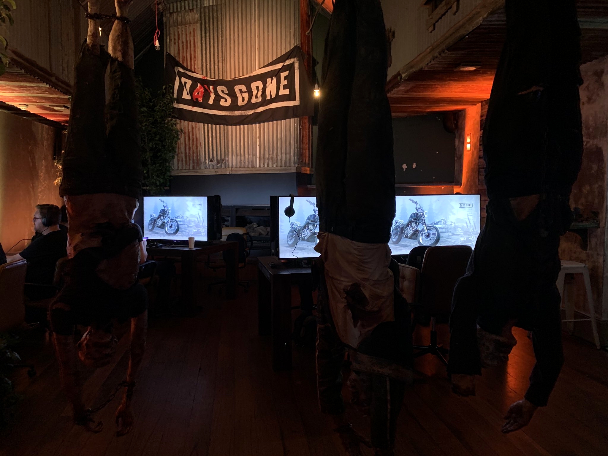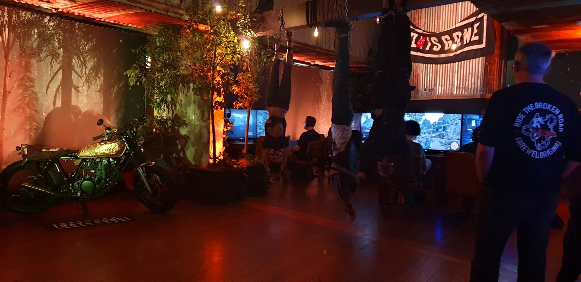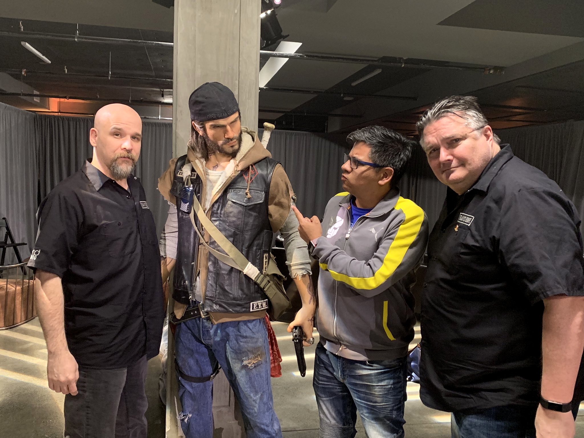 Специально для показа игры разработчики построили несколько мини-убежищ в стиле Days Gone — фрикам рекомендуется держаться подальше. Здесь есть мотоциклы Дикона Сент-Джона, главного героя игры, статуя медведя-зараженного и модель самого Дикона в натуральную величину.