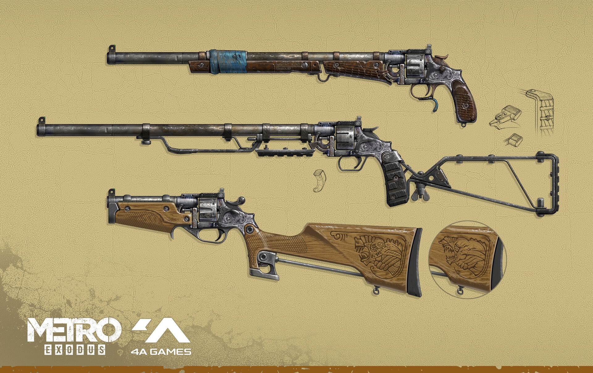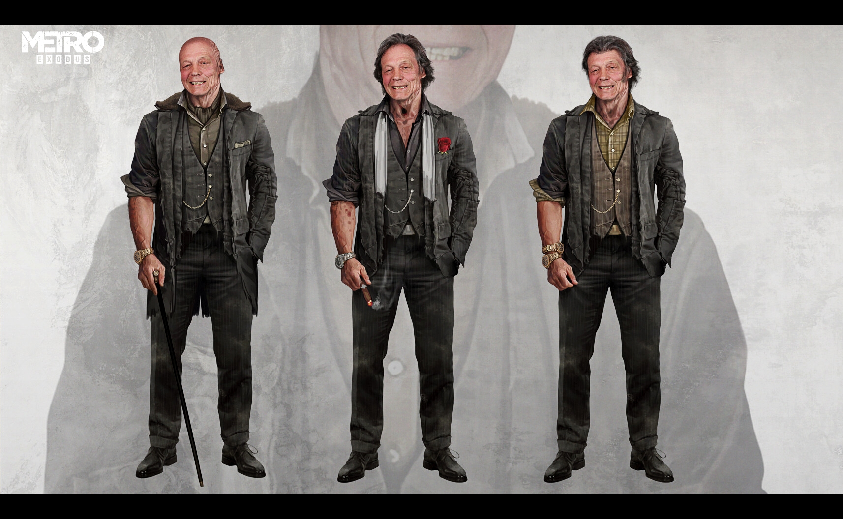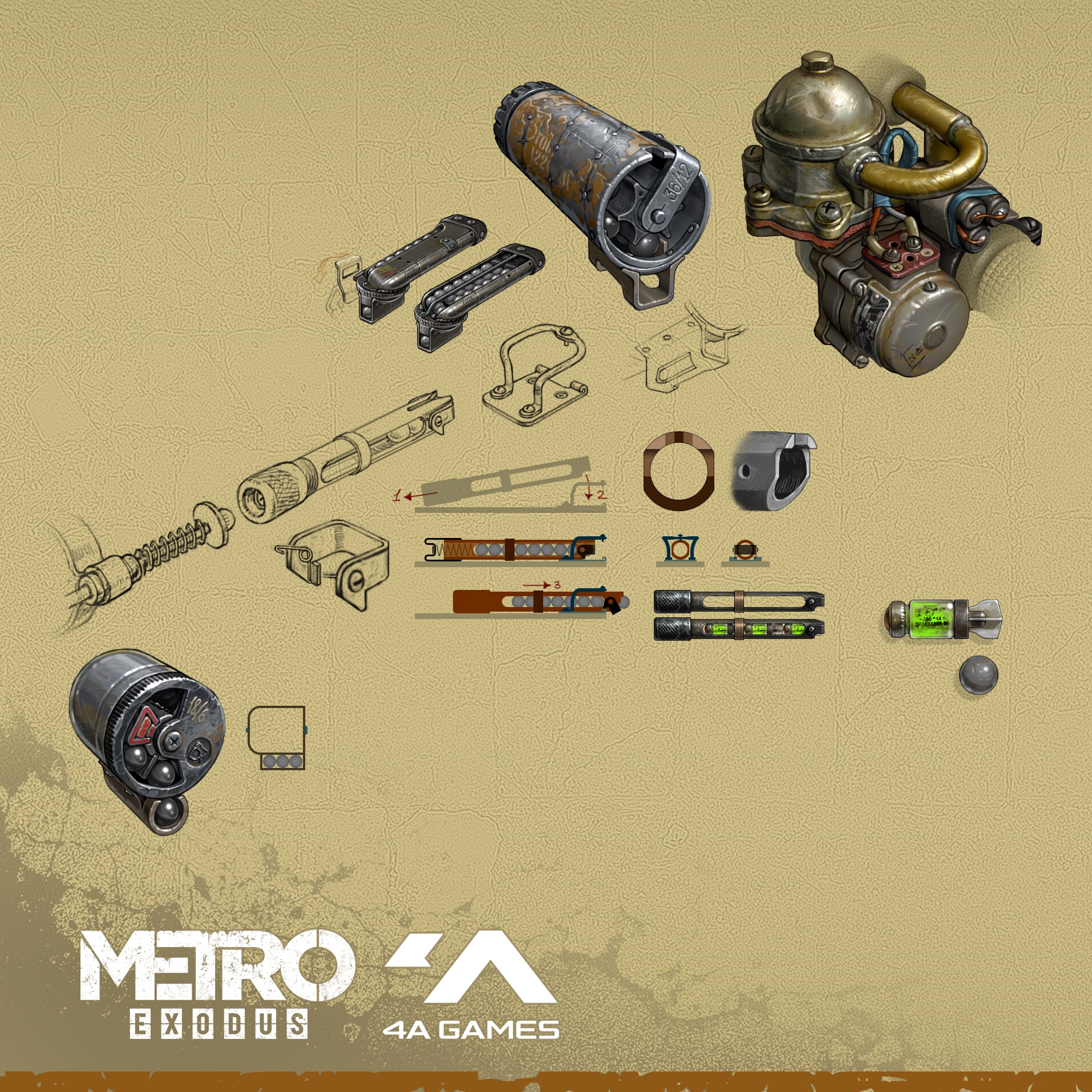 В подборку попали арты и рендеры персонажей Metro Exodus, наброски локаций, в том числе и не попавших в финальную версию, изображения монстров, оружия и мелких деталей, делающих игровой мир более реалистичным.