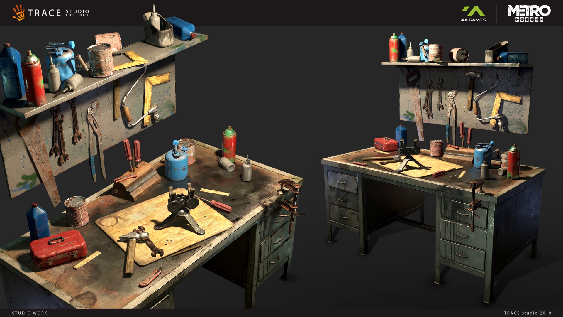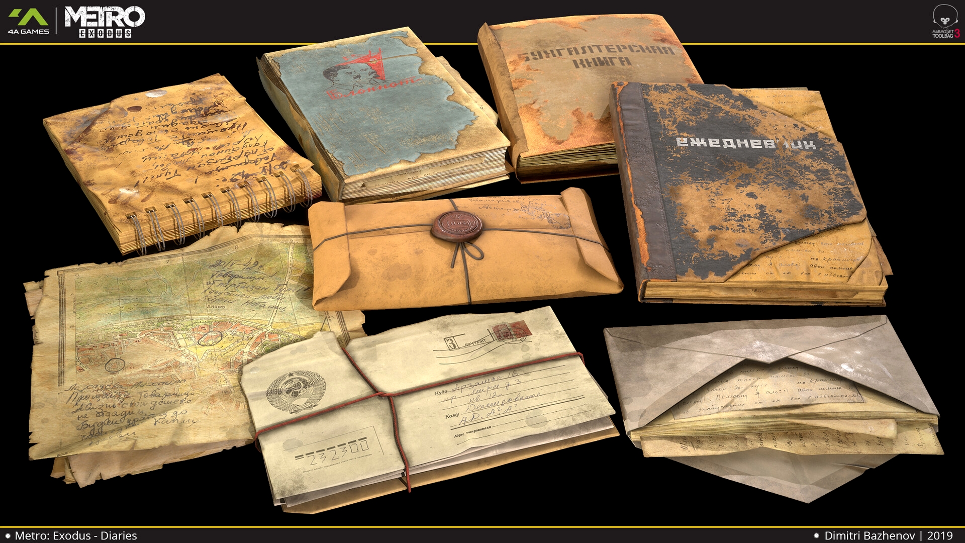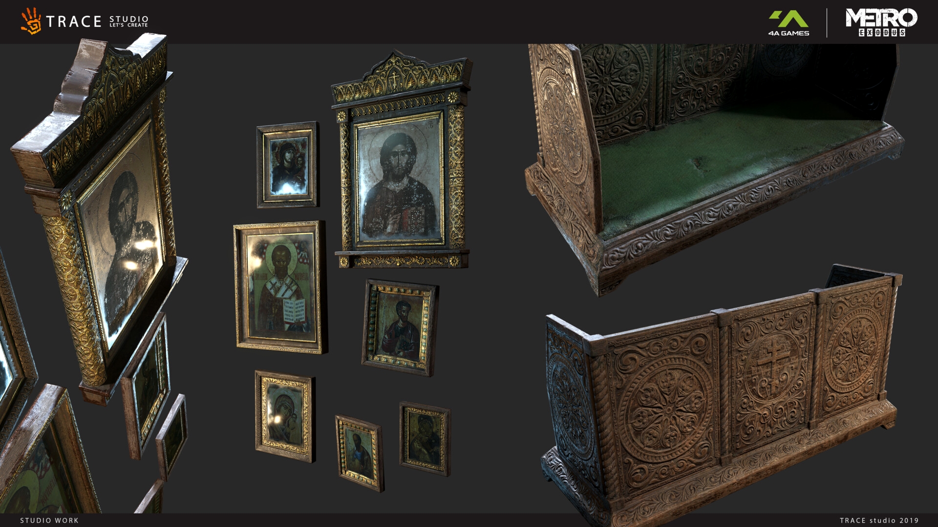 Здесь собраны работы Trace Studio, Андрея Михайлова, Анастасии и Влада Ткач, Дмитрия Паркина, Ильи Толмачева, Александра Криволапова, Павла Дороховского, Дмитрия Баженова, а также других сотрудников и партнеров 4A Games.