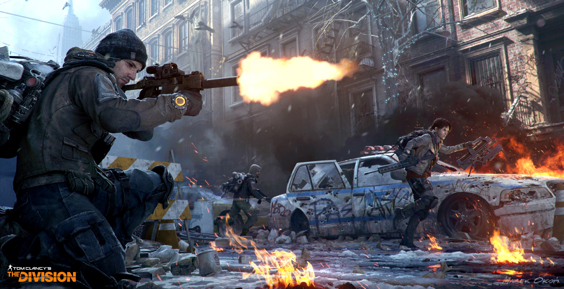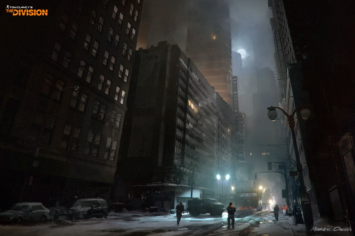 Для первой части The Division художник нарисовал серию артов, передающих настроение брошенного города: с замерзшими улицами, покрытыми мусором, темными домами и агентами Спецотряда, ведущими бой с бандитами.