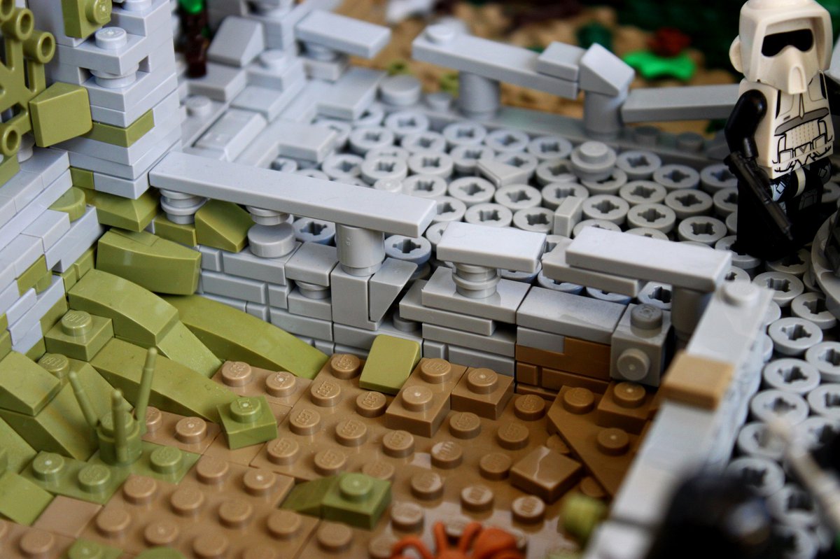 На строительство ушло множество блоков, в основном добытых Люком во время работы в магазине LEGO — благодаря хорошей скидке. Это не первый раз, когда Люк создает LEGO-версию локации из Star Wars Battlefront 2: взгляните, например, на его диораму с Джакку.