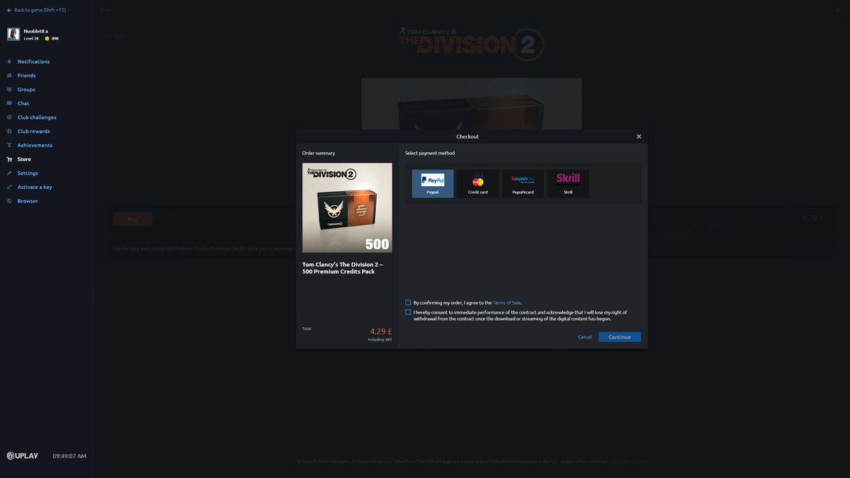 С The Division 2 все иначе: здесь покупка премиальной валюты осуществляется напрямую как при запуске через Epic Games Store, так и при прямом входе в игру через Uplay. В обоих случаях интерфейс покупки выглядит одинаково.