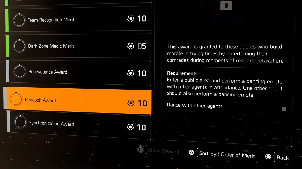 Например, награда полагается за помощь группе, запросившей поддержку во время прохождения сюжетного задания. Воскрешение агента и выполнение задания в составе группы без использования аптечек или лечебных навыков тоже заслуживает поощрения.