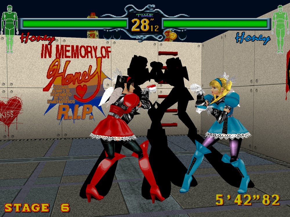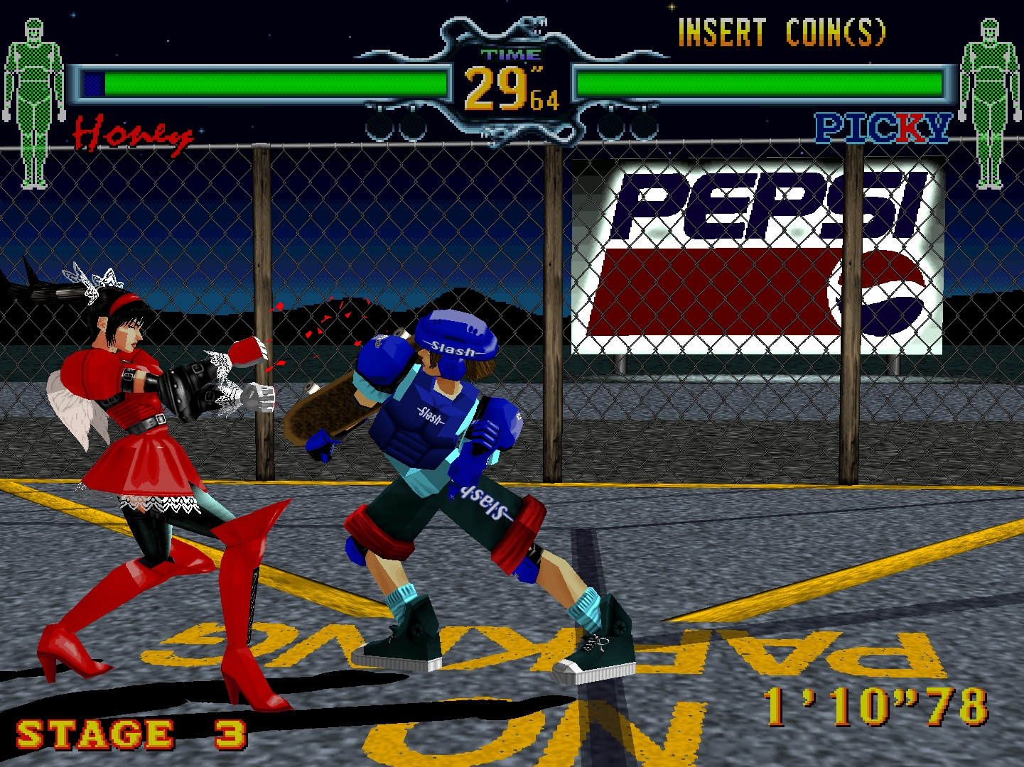 Другое дело, что на DreamCast пострадала графика игры, в большей степени детализация окружения и персонажей. Но при всём моём великом сожалении, аркадная версия игры практически неиграбельна в данный момент из-за очень плохого эмулятора: низкая скорость и графические артефакты, а также полное отсутствие настроек. Однако, пару скриншотиков с сравнением графики я всё-таки сделал: