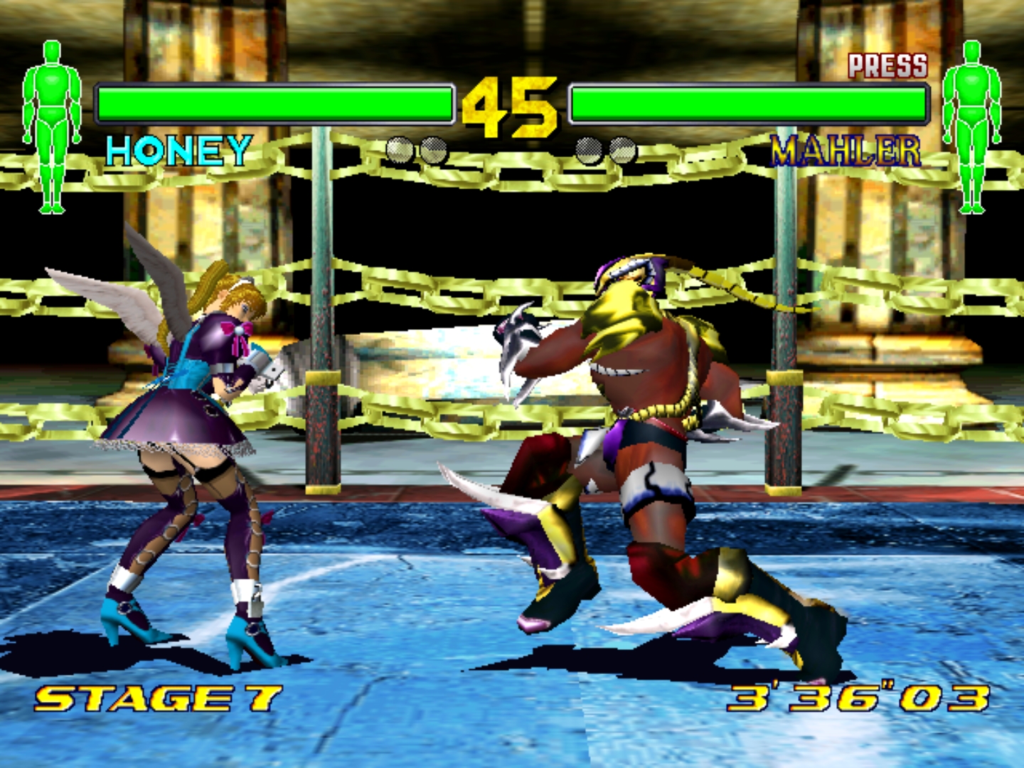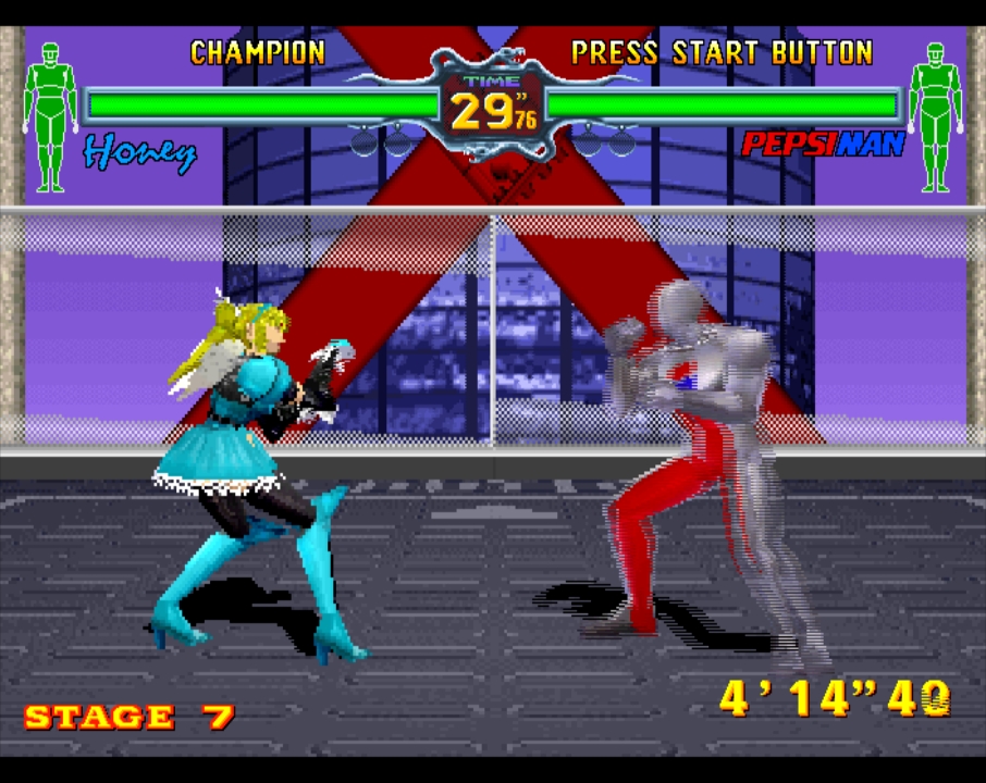 4. Как вы уже догадались, то графика в игре сильно пострадала при портировании на SEGA SATURN. Детализация персонажей очень сильно снизилась, а локации и вовсе стали состоять из "клетки" и картинки на заднем плане. Впрочем, такое наблюдается и в серии TEKKEN.