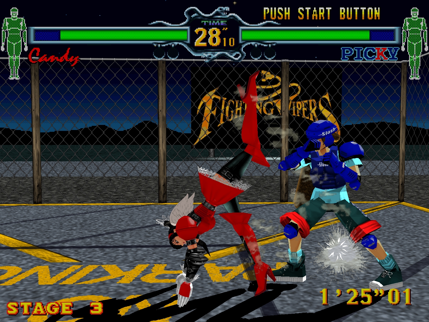 Fighting Vipers вышла в далёком 1995 году, на аркадный автомат. Игра представляет из себя типичный файтинг того времени, который создан на модифицированном движке Virtua Fighter. После успеха на аркадных автоматах, игра перебралась и на домашние платформы: SEGA Saturn (29 октября 1996 года), PlayStation 2 (28 апреля 2005 года), а также PlayStation 3 и XBOX 360 (28 ноября 2012 года). Как видно из дат, она была эксклюзивом SEGA Saturn очень долгое время. Но из-за краха SEGA на консольном рынке многие проекты студии были портированы на всевозможные платформы.