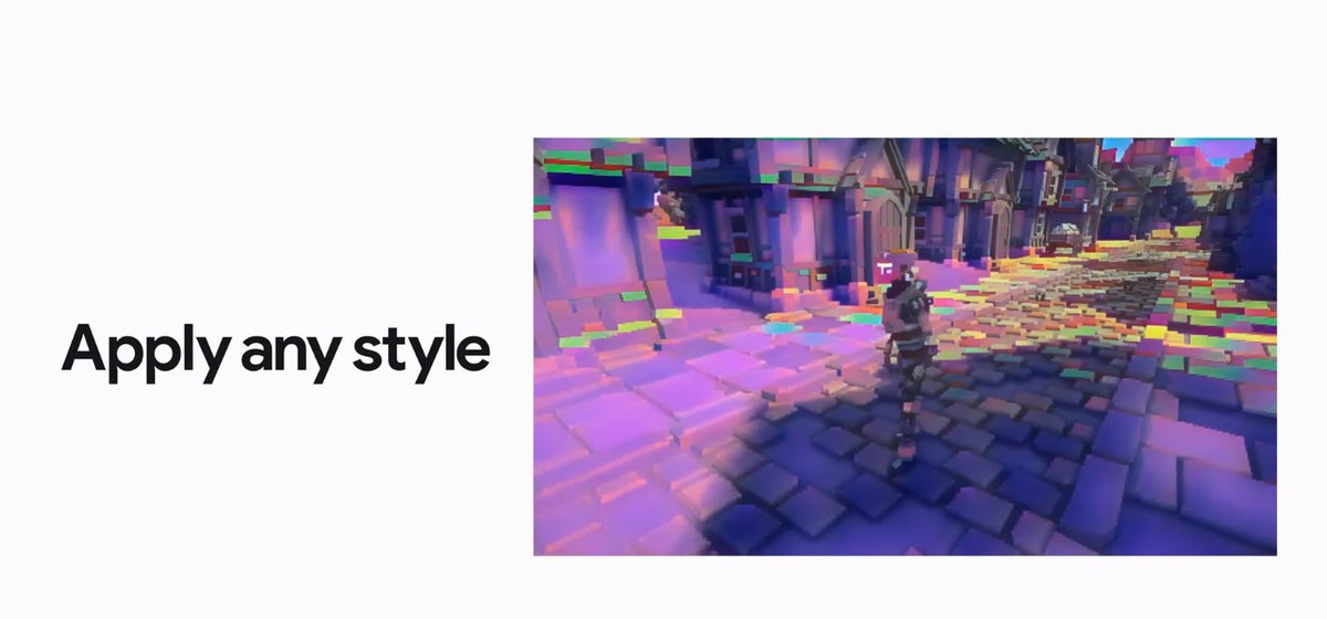 Технология, позволяющая целиком менять графический стиль игры: в демо-ролике серый мир с роботом превратили сначала в абстрактную картину, затем во что-то кубическое, а потом в проект в стиле Pacman. У разработчиков заготовлены две сотни стилей.
