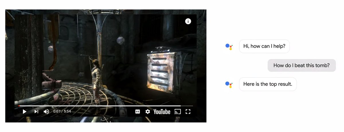 Игрок, попавший в сложную ситуацию, может попросить помощи у ассистента Google. Тот найдет на YouTube ролик, подходящий под описание, и покажет его прямо в игре.