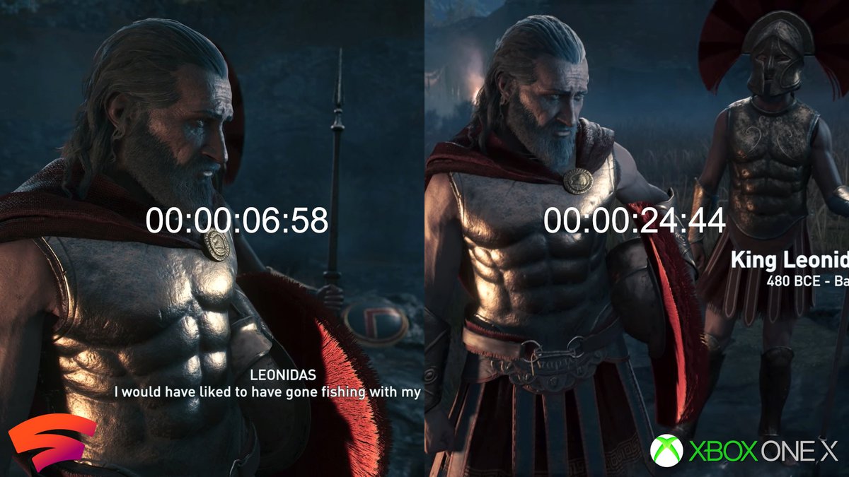 Помимо производительности у Stadia есть еще несколько преимуществ над обычными консолями. Во-первых, скорость загрузки: цель Google это загрузить игру примерно за пять секунд, и Stadia это удается — во время тестов Assassin's Creed Odyssey грузился за 7 секунд, на Xbox One X та же загрузка занимала почти 25 секунд.