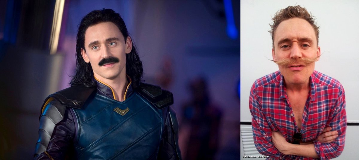 У Тома Хиддлстона есть фотографии с настоящими усами, но усатый Локи выглядит милее