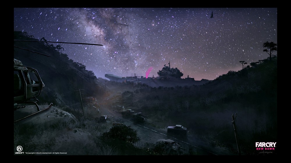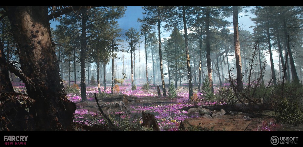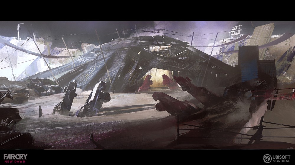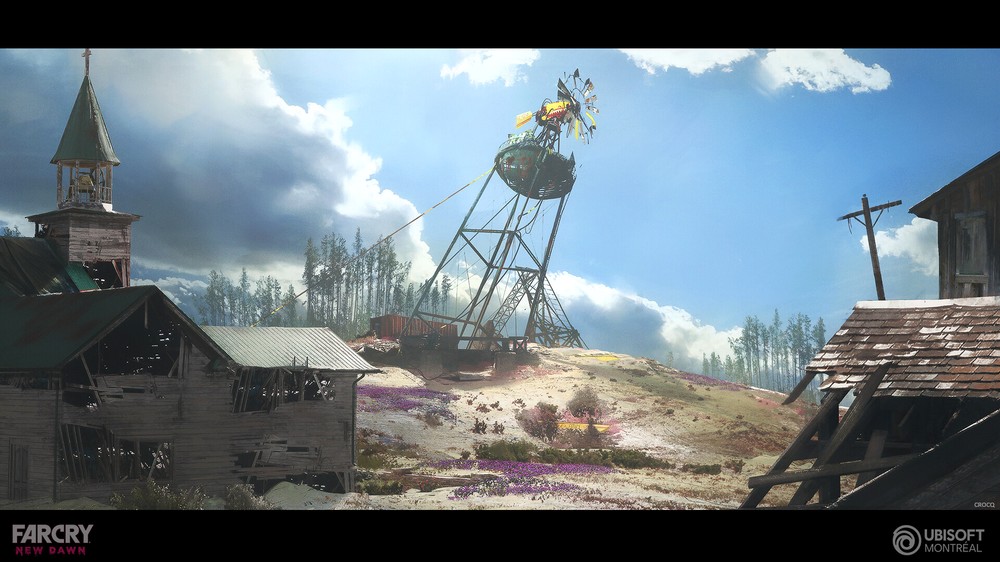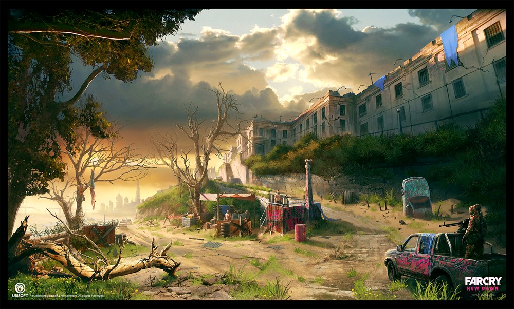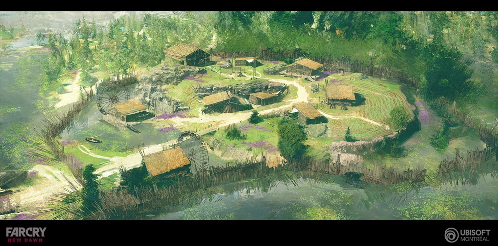 Художники из команды Ubisoft Montreal, участвовавшие в разработке Far Cry New Dawn, опубликовали концепт-арты, сделанные во время создания игры. В основном это наброски пост-апокалиптических локаций: от лесов с фиолетовыми цветами до разрушенных деревень и поселений выживших, сделанных из хлама.