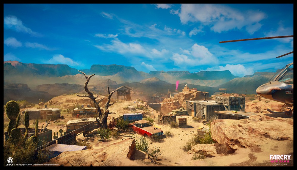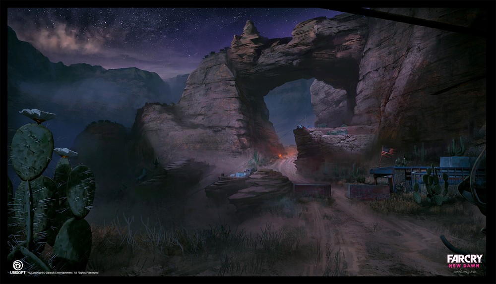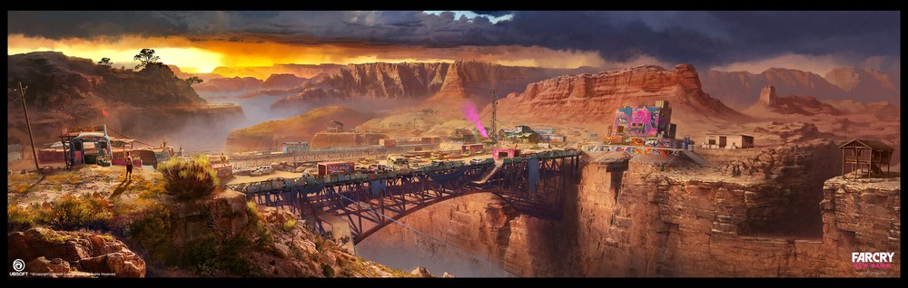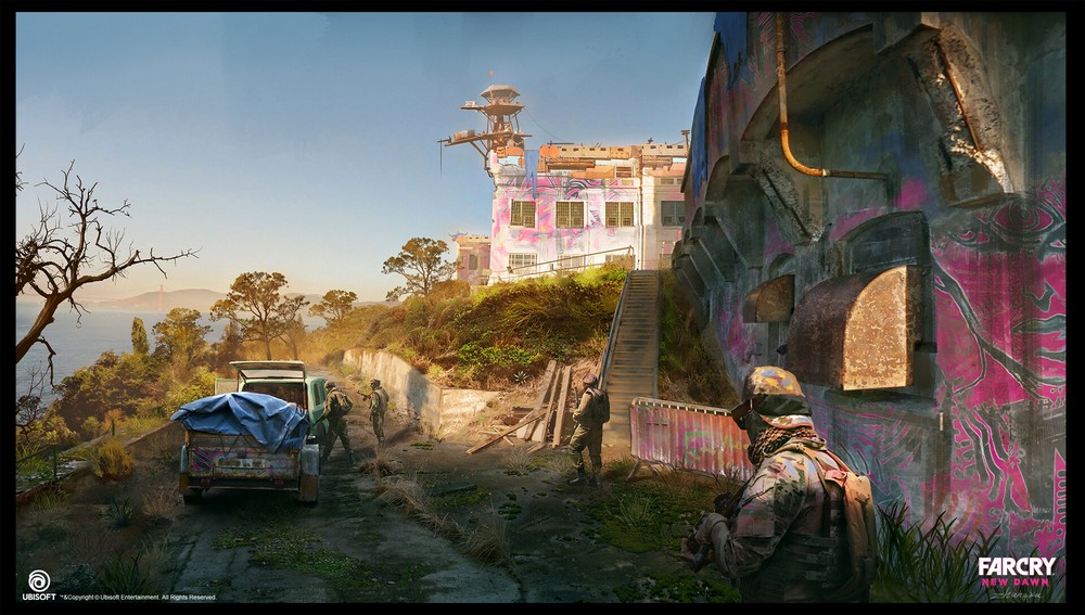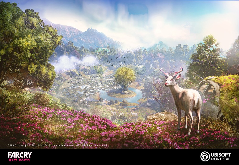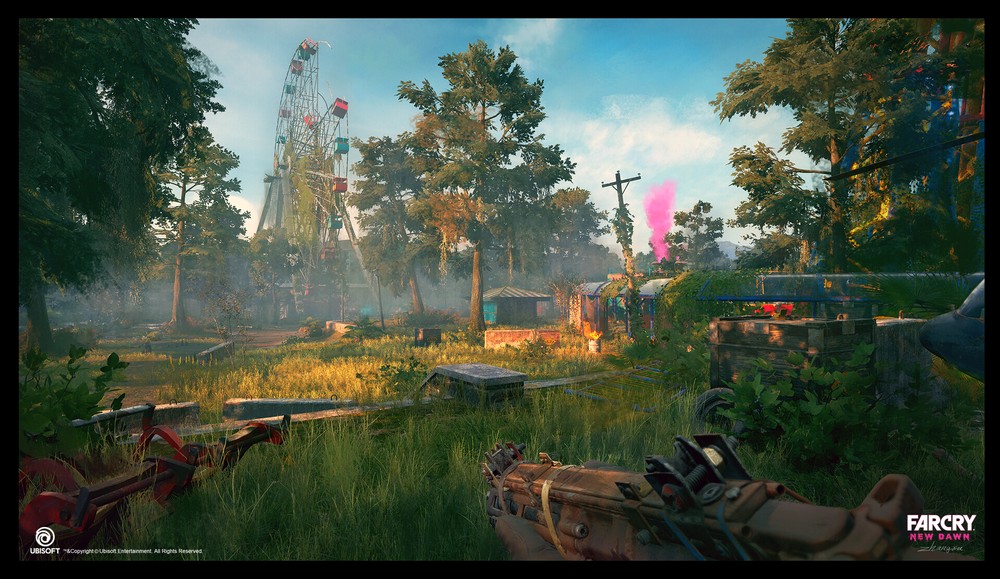 Художники из команды Ubisoft Montreal, участвовавшие в разработке Far Cry New Dawn, опубликовали концепт-арты, сделанные во время создания игры. В основном это наброски пост-апокалиптических локаций: от лесов с фиолетовыми цветами до разрушенных деревень и поселений выживших, сделанных из хлама.