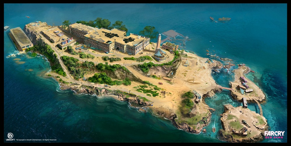 На артах можно увидеть ряд локаций из Экспедиций — это вылазки за пределы округа Хоуп. В подборку попала тюрьма Алькатрас, заброшенный авианосец, парк развлечений и еще несколько мест, превратившихся в лагеря бандитов.