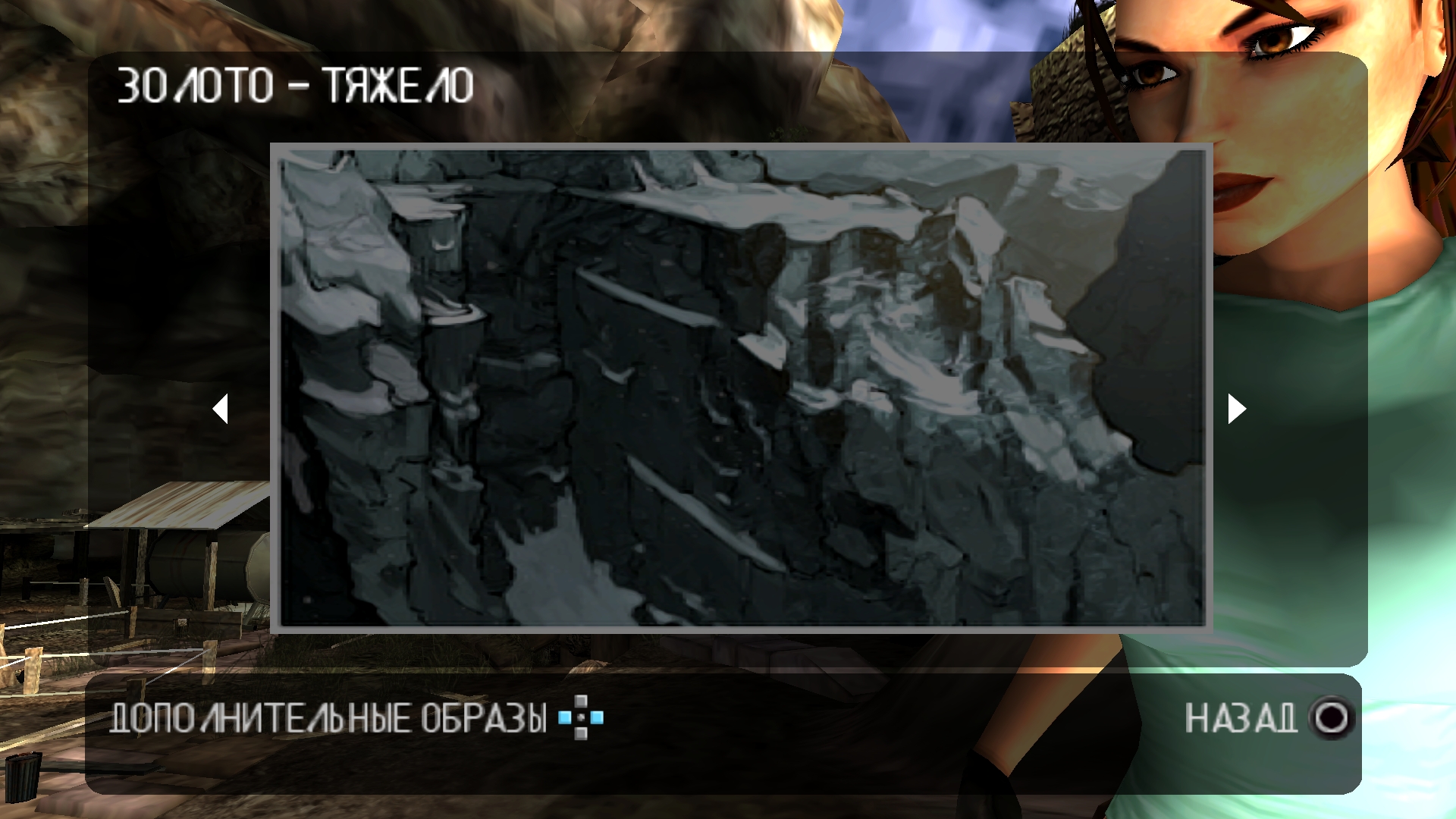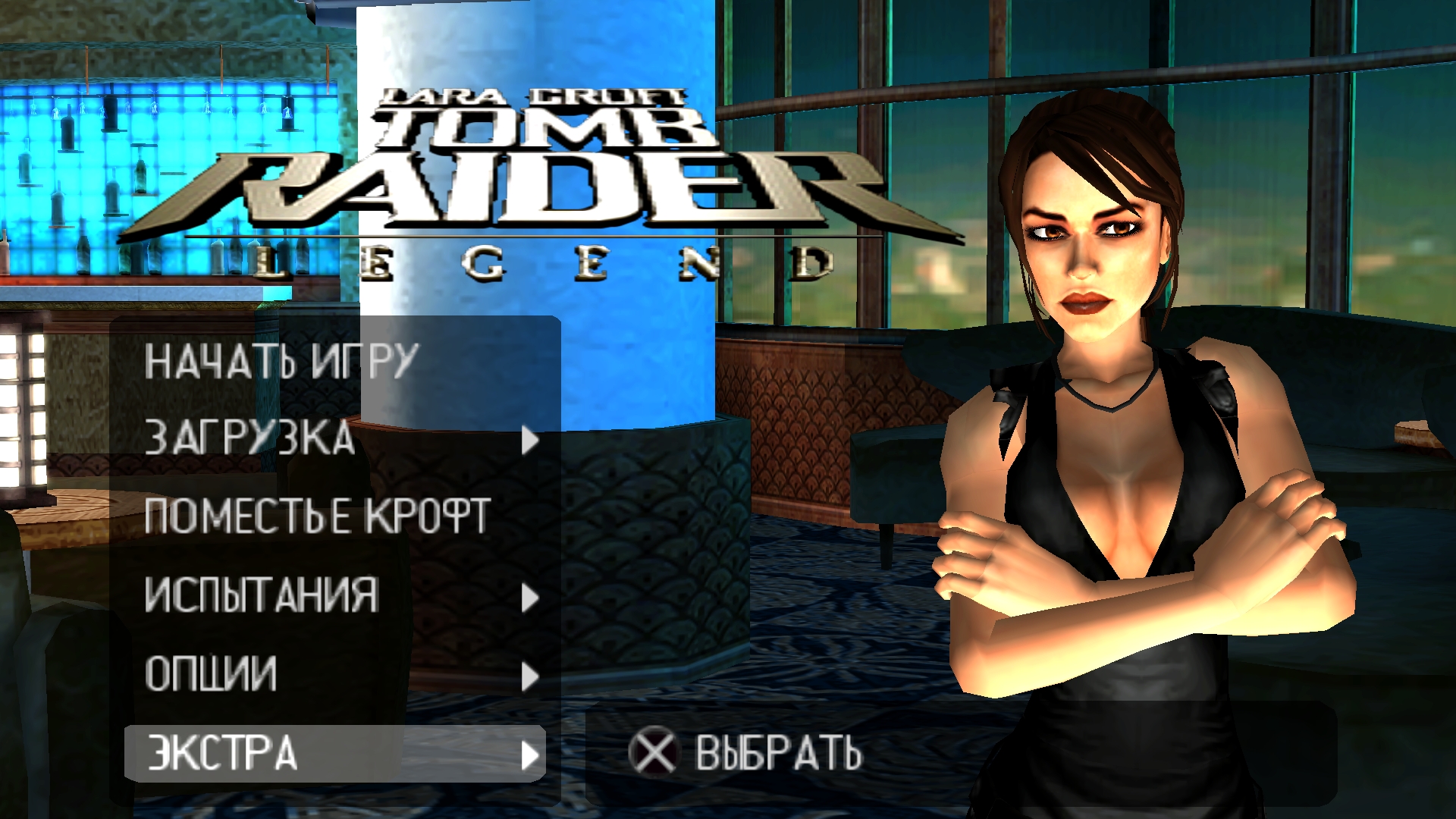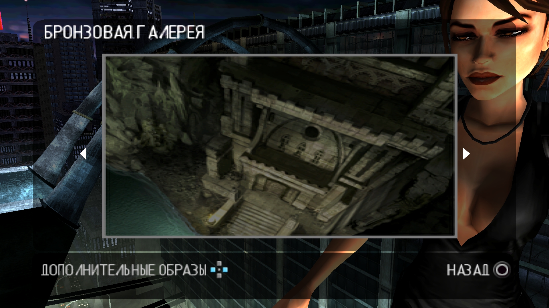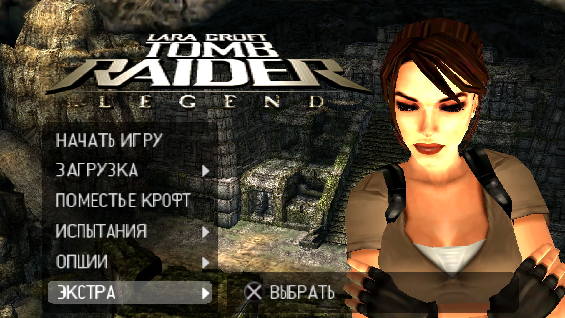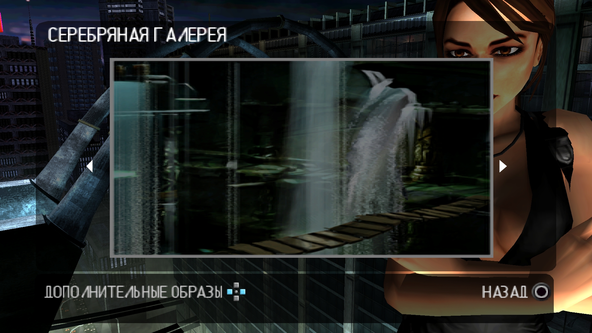 Следующим нововведением является изменение фона главного меню. Те, кто проходил игру, помнят, что локация и одежда Лары менялись в зависимости от этапа, на котором игрок остановился. После прохождения, Лара навсегда оставалась на этапе Боливии. В версии для PSP эту проблему решили исправить, дав игрокам выбор из 15-ти фонов. Среди всех 15-ти фонов есть те, которые встречаются во время прохождения игры, но также внедрены и новые. Открываются фоны по мере прохождения сюжетной линии и прохождения режима испытаний.