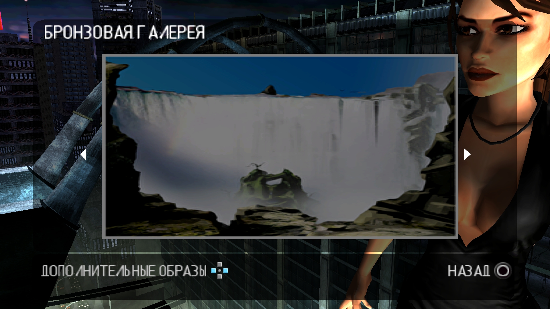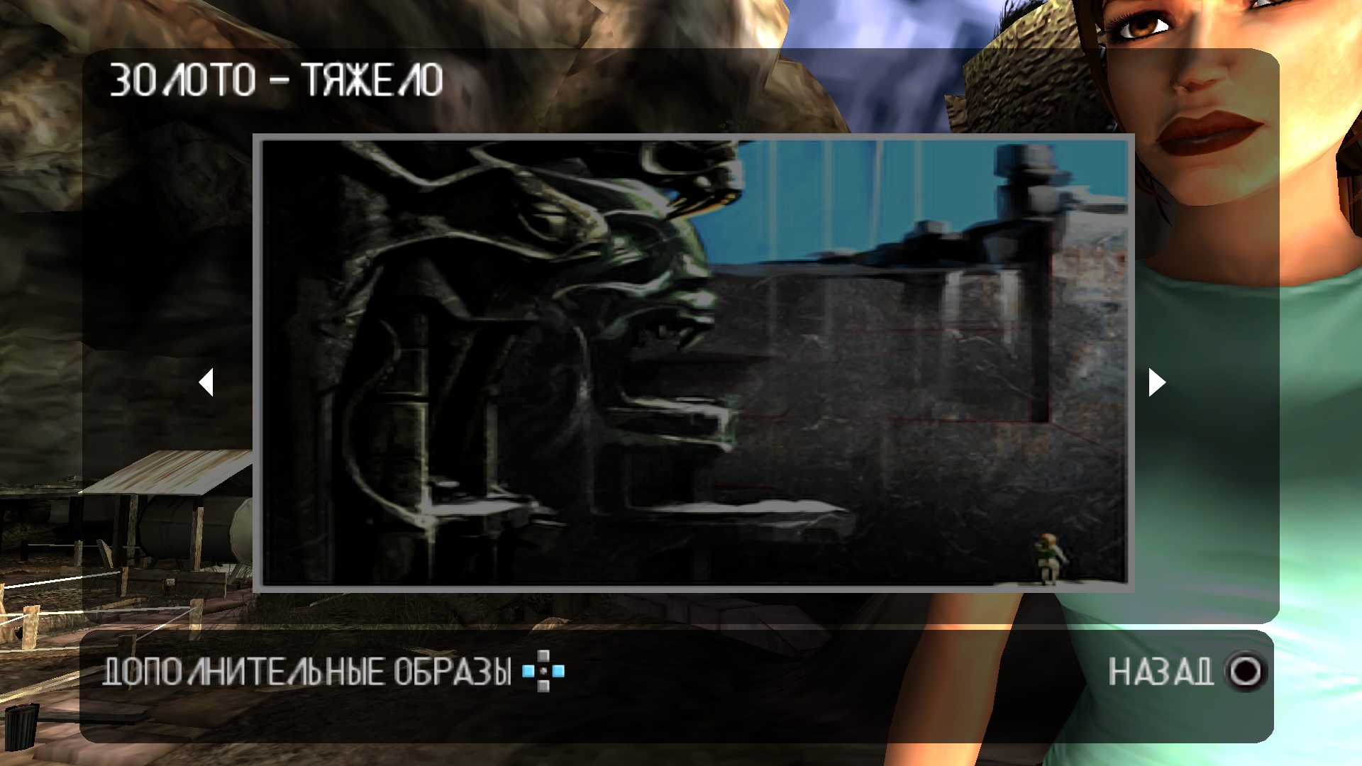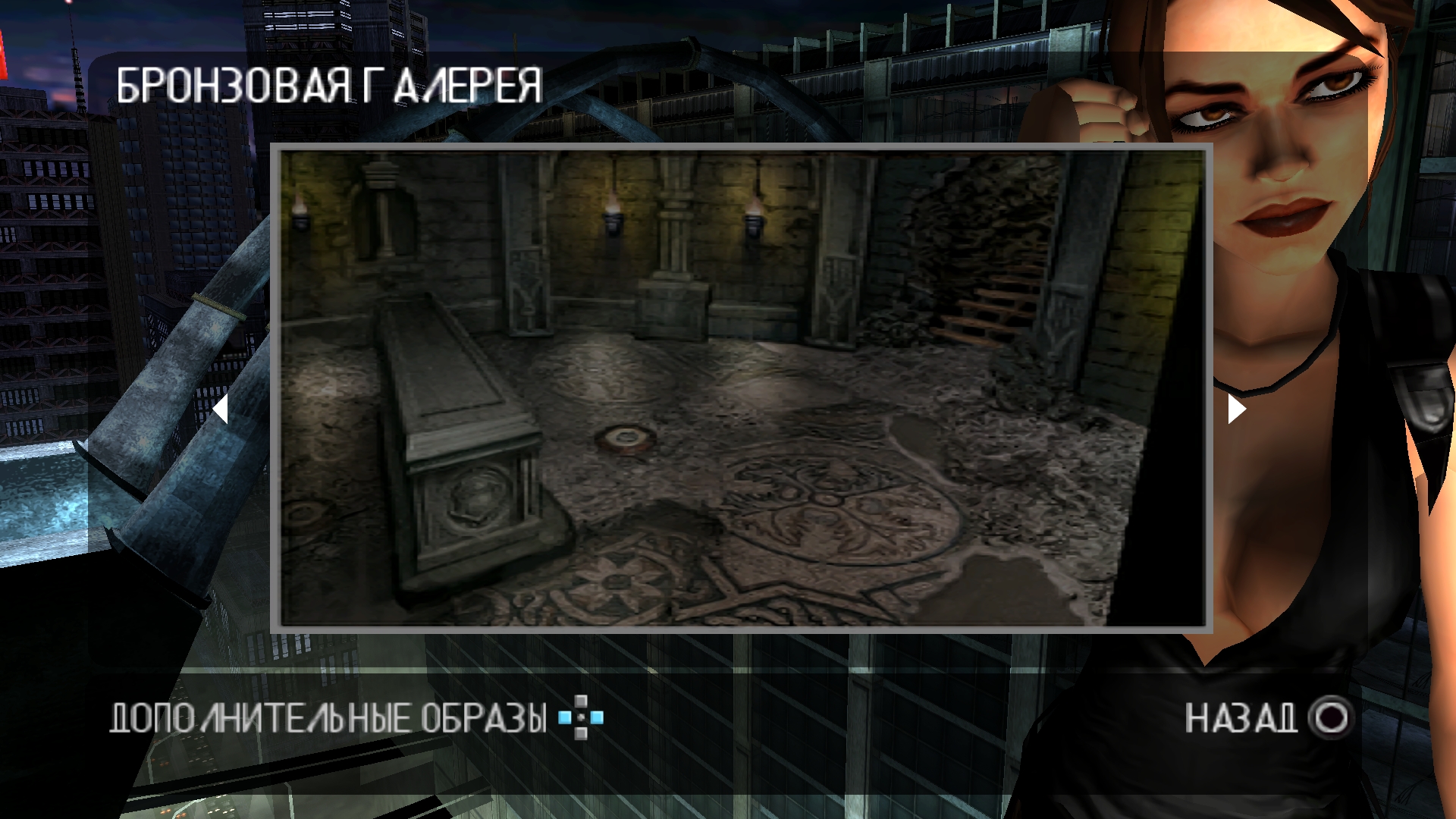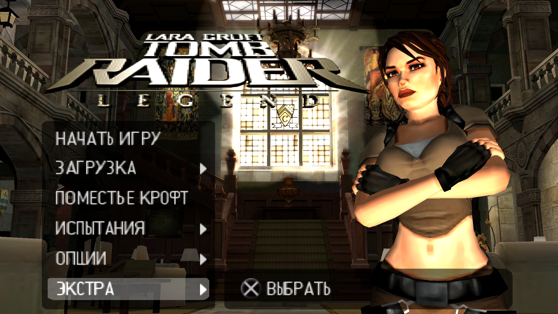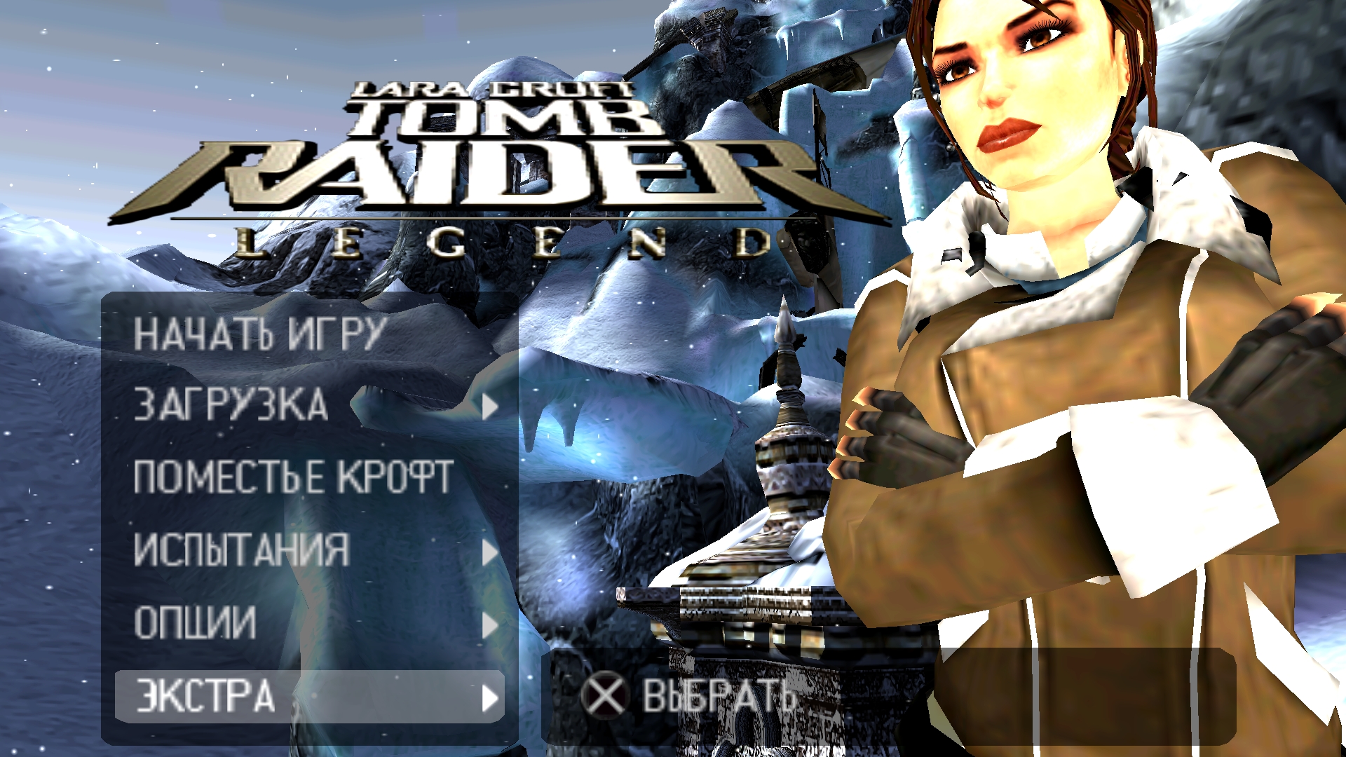 Следующим нововведением является изменение фона главного меню. Те, кто проходил игру, помнят, что локация и одежда Лары менялись в зависимости от этапа, на котором игрок остановился. После прохождения, Лара навсегда оставалась на этапе Боливии. В версии для PSP эту проблему решили исправить, дав игрокам выбор из 15-ти фонов. Среди всех 15-ти фонов есть те, которые встречаются во время прохождения игры, но также внедрены и новые. Открываются фоны по мере прохождения сюжетной линии и прохождения режима испытаний.
