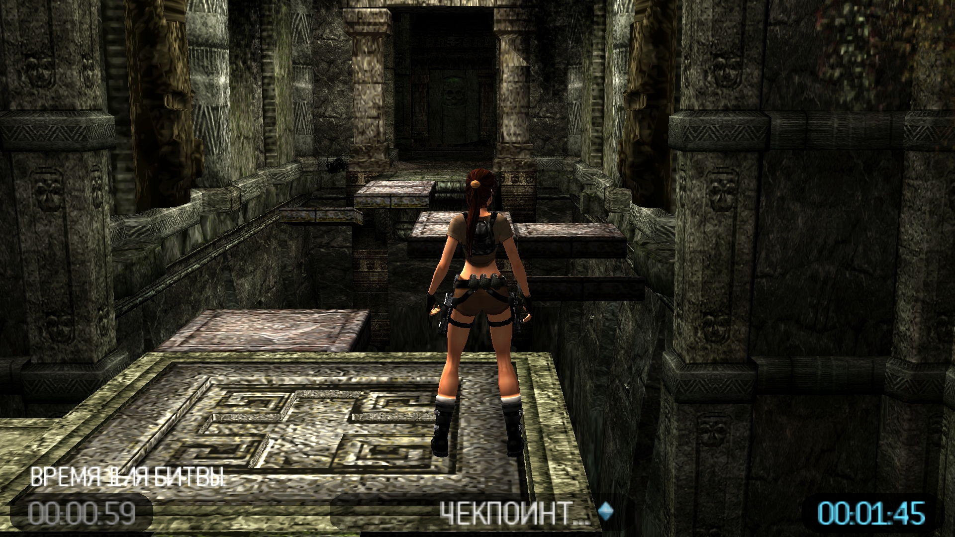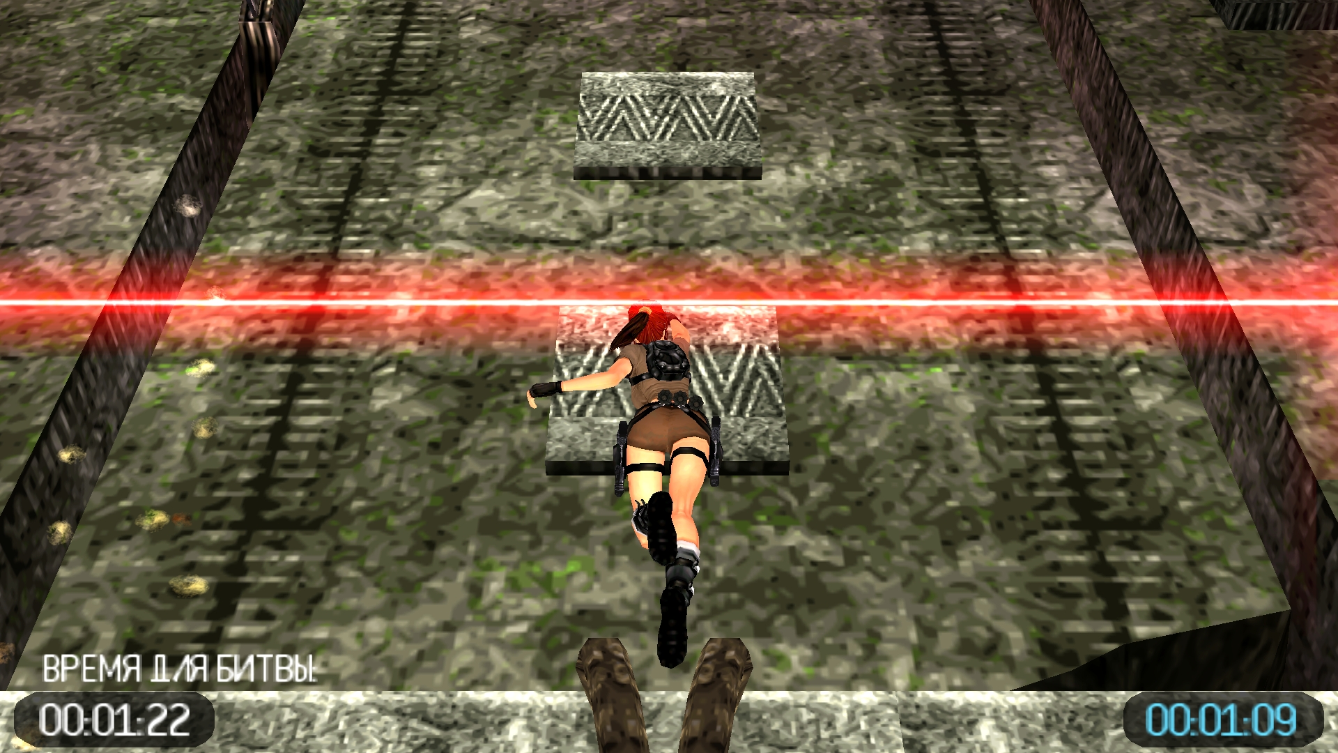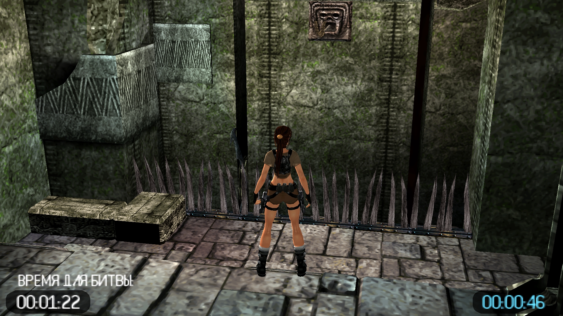 Забег на время подразумевает прохождение локации с препятствиями. Всего для прохождения доступно 8 локаций. Начинаются они все идентично, но ловушки в каждой из них разные: где-то парящие платформы, которые исчезают через некоторое время, где-то надо в воздухе не попасться на каменные сферы, а где-то и вовсе нужно избегать лазеров. В среднем, задания на 1 – 3 минуты, и вам нужно уложится в заданное время, иначе забег будет провален. Однако, даже по истечению времени, локацию можно пройти до конца, чтобы после пройти её без ошибок. Умереть в режиме нельзя, любой способ суицида возвращает вас на исходное место с полной шкалой жизни. Из чего следует, что спрыгнуть со скалы, или напороться на шипы можно, но Лара останется жить.