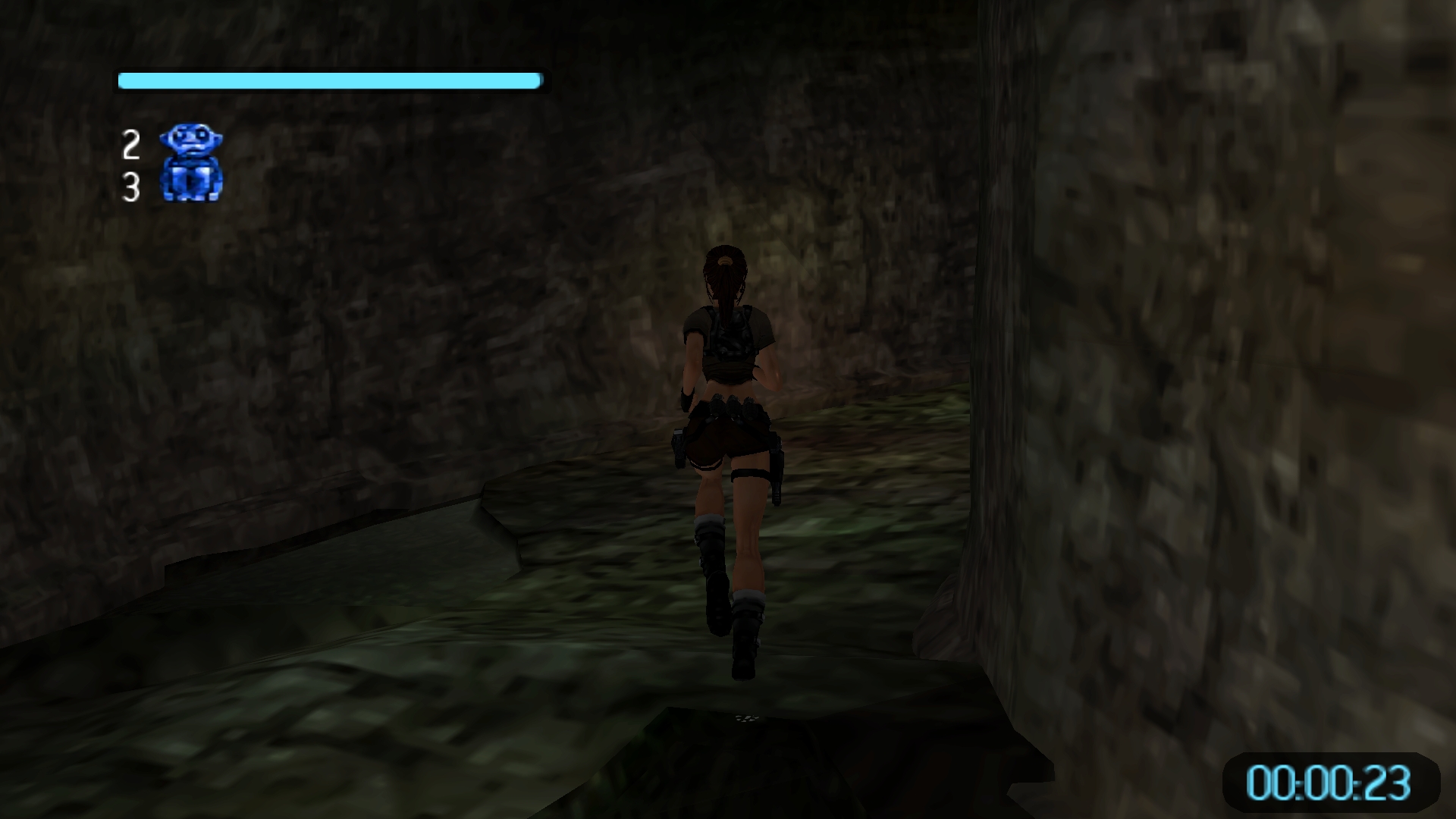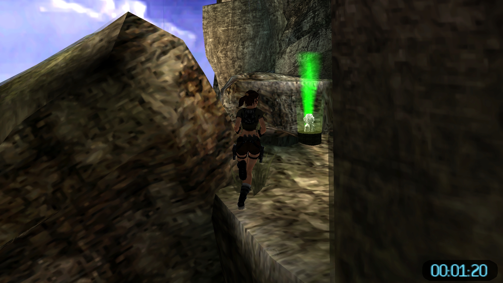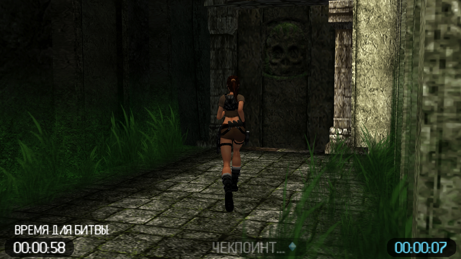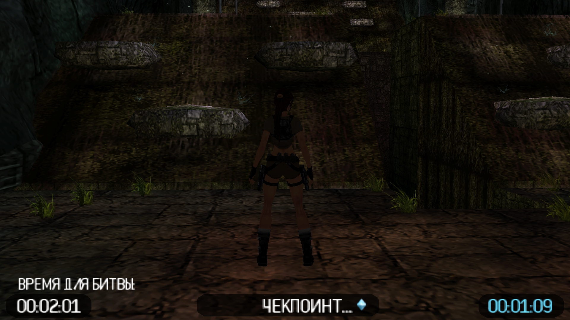 Забег на время подразумевает прохождение локации с препятствиями. Всего для прохождения доступно 8 локаций. Начинаются они все идентично, но ловушки в каждой из них разные: где-то парящие платформы, которые исчезают через некоторое время, где-то надо в воздухе не попасться на каменные сферы, а где-то и вовсе нужно избегать лазеров. В среднем, задания на 1 – 3 минуты, и вам нужно уложится в заданное время, иначе забег будет провален. Однако, даже по истечению времени, локацию можно пройти до конца, чтобы после пройти её без ошибок. Умереть в режиме нельзя, любой способ суицида возвращает вас на исходное место с полной шкалой жизни. Из чего следует, что спрыгнуть со скалы, или напороться на шипы можно, но Лара останется жить.