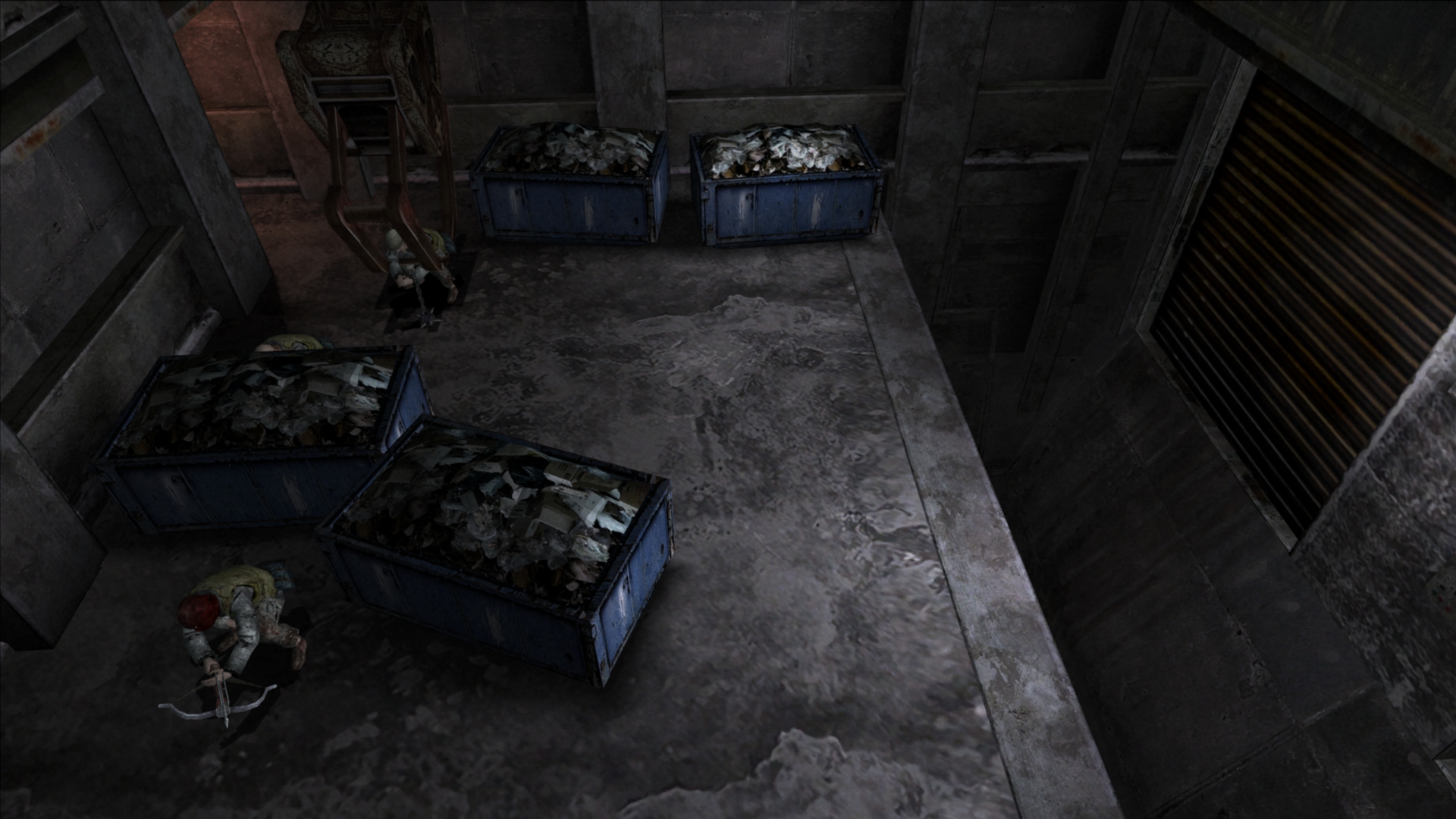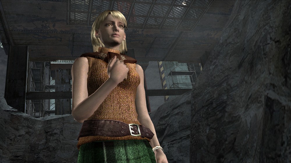 Так же с нами пол игры будет бегать Эшли, истинная дочка президента, из-за которой, по сути, мы постоянно отхватываем люлей. За игру я её забывал, убивал, чего с ней только не делал, в общем. Бесила меня неимоверно. То случайно вылезет под пулю и с выстрела умрёт, то ещё что учудит. Постоянно ноет, чтоб я не смотрел на её трусы, и абсолютно немощная. Ни оружия, ни хоть какой-то самозащиты... А главное, её может в любой момент схватить деревенщина, донести до ближайшей двери и всё, миссия снова провалена. Так я её ещё и частенько забывал. Дело в том, что наши герои отчасти аутисты, которые не знают, что по лестнице можно не только подниматься, но и спускаться. Таким образом, Леон может без урона спрыгнуть с колокольни, хотя впритык стоит лестница, а Эшли и вовсе немощная — ни спрыгнуть, ни слезть как человек. Поэтому нам надо стоять под лестницей и ловить её, что я частенько забывал делать. Но всё же получить долю теплоты от игры с ней можно. Дабы её не украли деревенщины, её можно спрятать в мусорный бак. Ох как приятно.