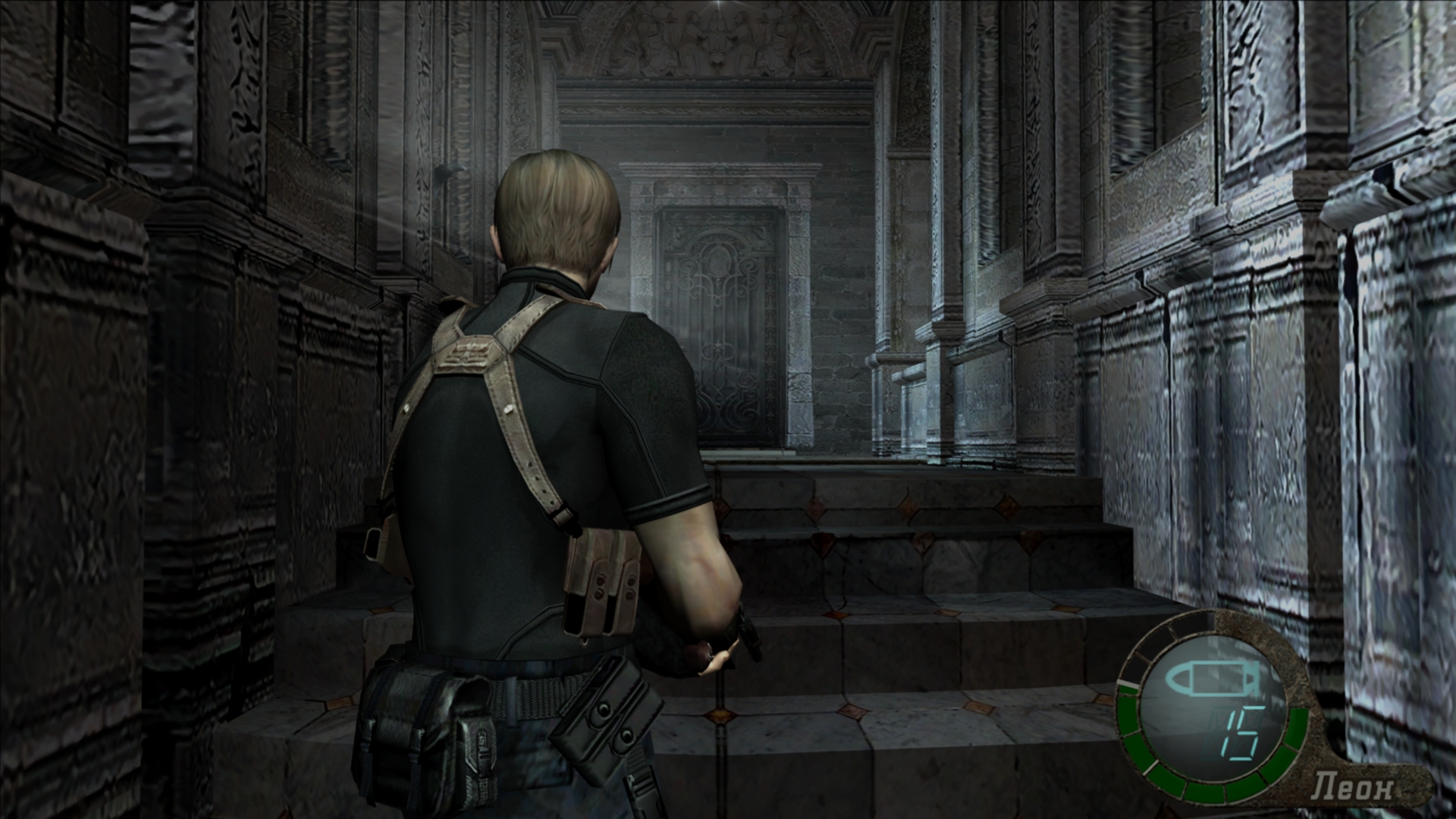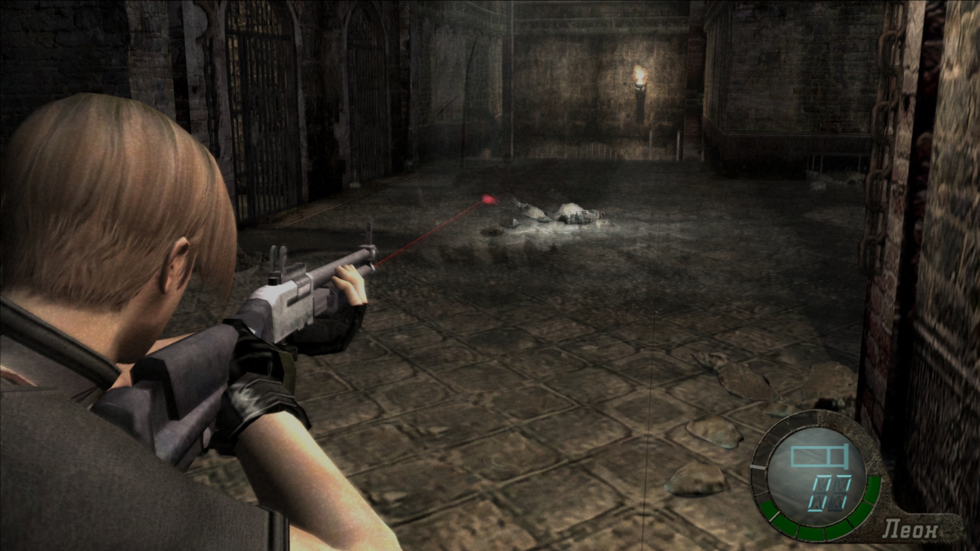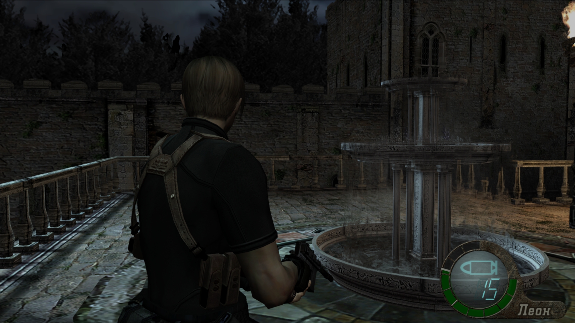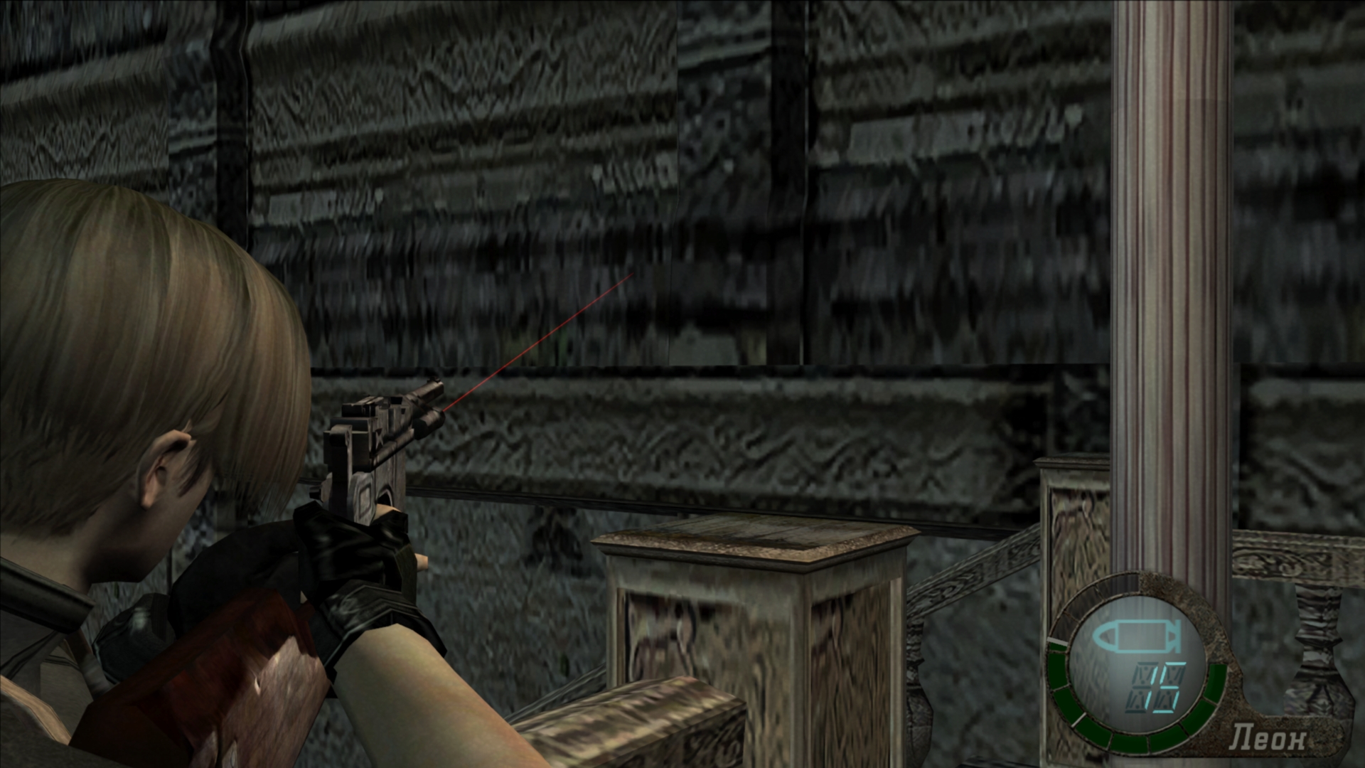 Ну, а теперь снова вернёмся к графике. Для своего года игра неимоверно технологична и красива. Даже проходя игру сейчас я не скажу, что Resident Evil 4 из мезозоя, ибо, несмотря на отвратительные текстуры по сегодняшним меркам, здесь хорошая атмосфера и игра света, что отводит большую часть взгляда от полигонов. Так же отмечу шикарную мимику и очень классные отражения. Но всё-же, зачем Capсom назвала это издание «Resident Evil 4 Ultimate HD Edition» — ума не приложу, ибо от HD тут ничего нет. Вот несколько примеров их HD версии...