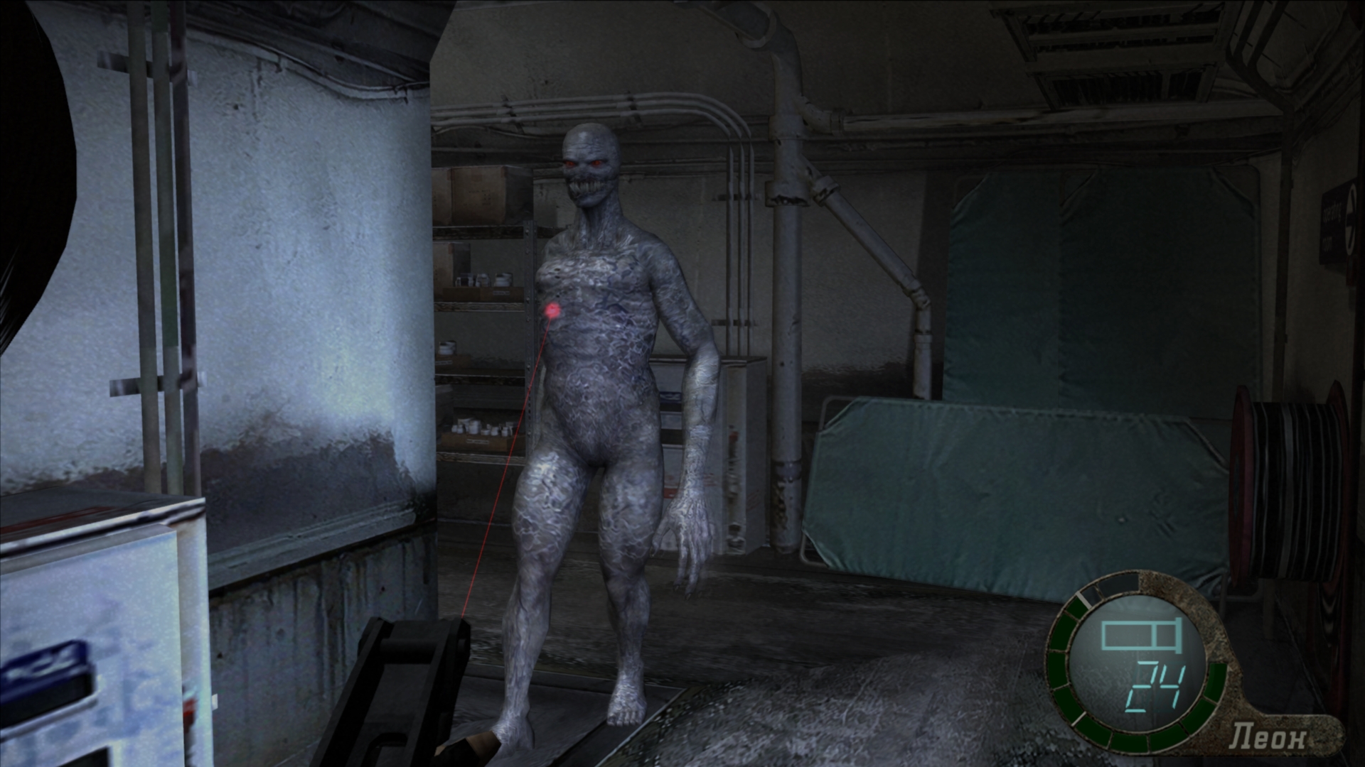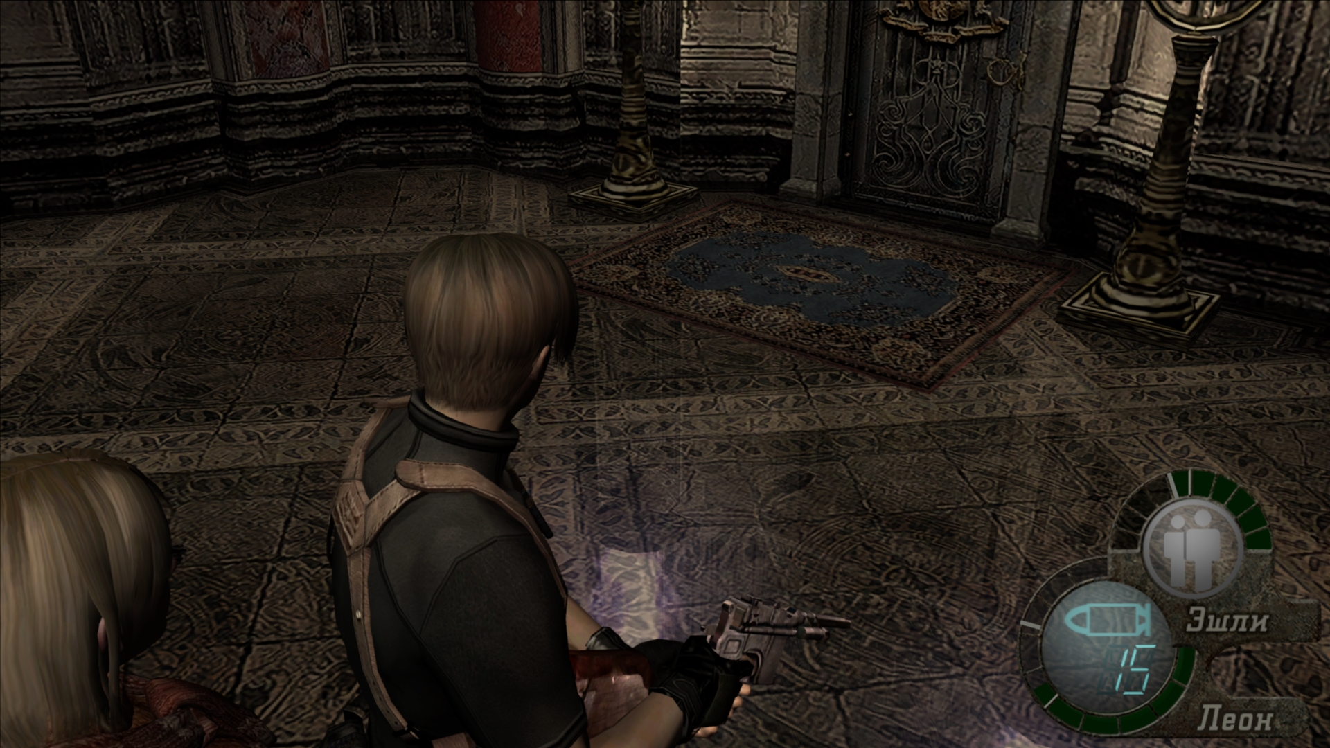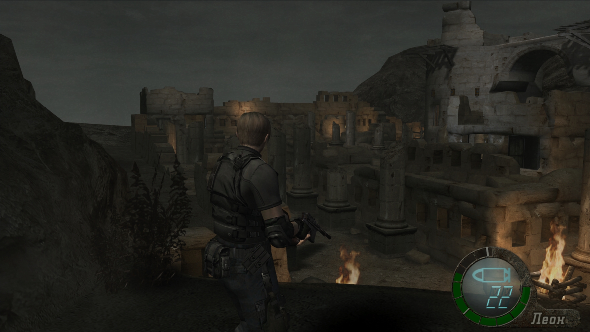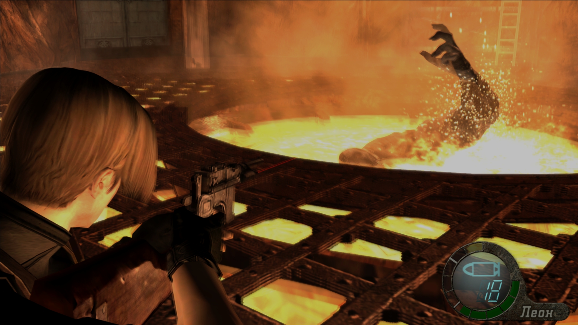 Ну, а теперь снова вернёмся к графике. Для своего года игра неимоверно технологична и красива. Даже проходя игру сейчас я не скажу, что Resident Evil 4 из мезозоя, ибо, несмотря на отвратительные текстуры по сегодняшним меркам, здесь хорошая атмосфера и игра света, что отводит большую часть взгляда от полигонов. Так же отмечу шикарную мимику и очень классные отражения. Но всё-же, зачем Capсom назвала это издание «Resident Evil 4 Ultimate HD Edition» — ума не приложу, ибо от HD тут ничего нет. Вот несколько примеров их HD версии...