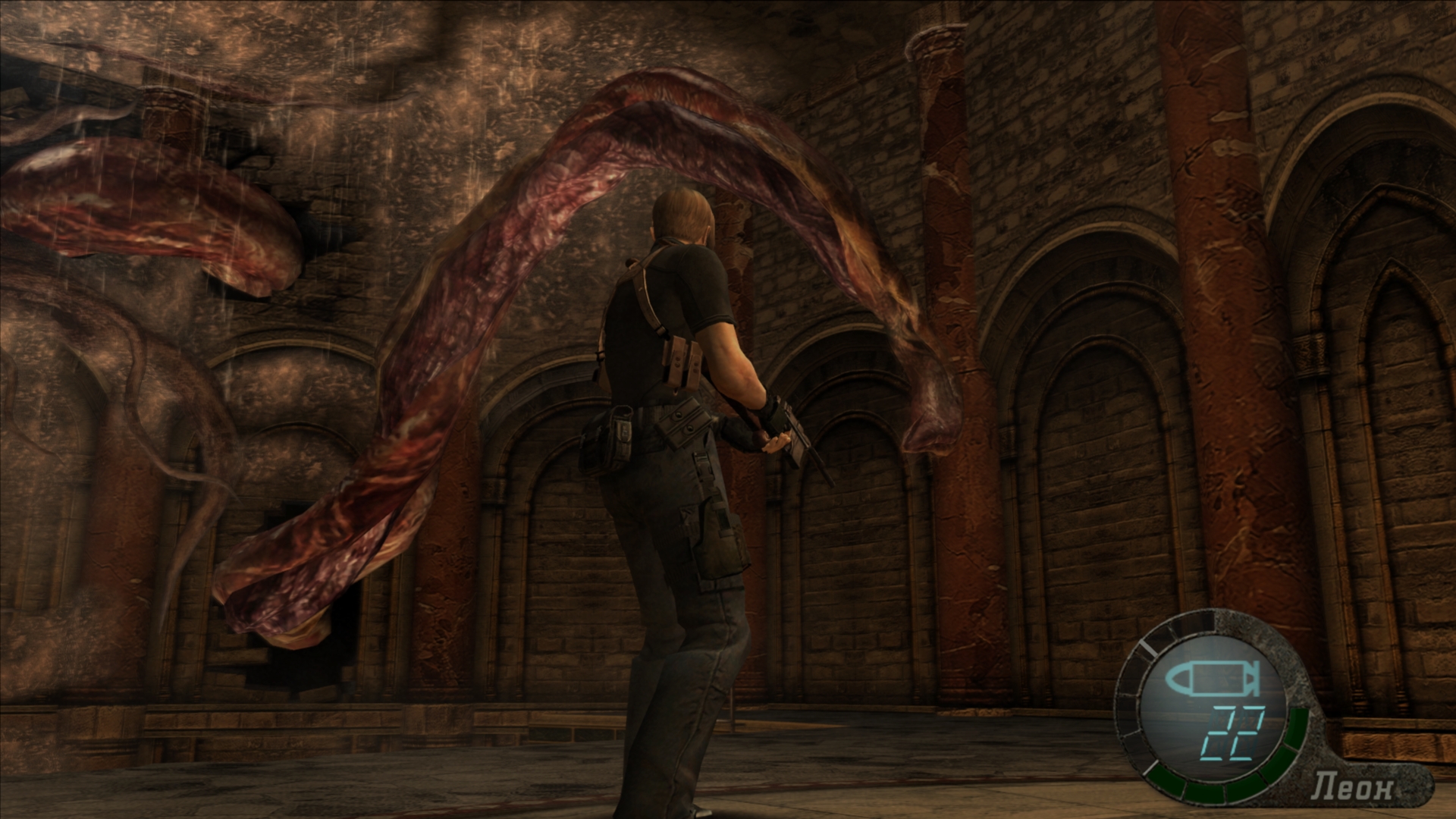 Так же меня порадовало большое количество разного оружия, их прокачка, да и всё, что с этим связано. Несколько видов пистолетов, дробовиков, снайперских винтовок, гранатомёт, который я так и не стал пробовать, РПГ, пулемёт, до которого ещё руки не дошли, ибо открылся после прохождения, гранаты. В общем, арсенал тут богатый, ещё и прокачиваемый. Я играл на среднем уровне сложности, ибо изначально боялся, что и его не потяну из-за управления. Но выбора не было, поскольку на лёгком уровне сложности вырезаны некоторые кат-сцены и локации. Поэтому, стиснув зубы, я отправился покорять долину грязных мужиков и баб с тесаками. К середине игры я уже отлично справлялся с управлением и игралось всё достаточно просто и приятно, что тоже стало для меня удивлением. Самым приятным оказалось постепенно нарастающее напряжение. Сначала давят обычными врагами, после — их делают более мощными и мутирующими, так эти твари ещё и топорами да косами кидаются... Так же подкидывают боссов, которых убить на удивление неимоверно просто. Поначалу я не хотел с ними связываться, поскольку привыкал к управлению, поэтому в ход шла РПГ, убивающая с выстрела. Чуть позже, боссов я мочил вручную, чуть ли не с ножа. И особой сложности в этом не было. Хотя, это я ещё увижу, ведь игру хочется пройти и на харде. На «норме» же убить их не составит особых проблем. Таким образом, играя за Аду, я убил Эль Гиганте с 4 выстрелов винтовки. До сих пор в шоке. Так же нам будут подкидывать насекомых (Навистадоры), невидимых или летающих, бензопильщиков, слепых упырей-россомах (Гаррадор), которых убить можно только в спину, страшных серых тварей (Регенераторы), которых без специальной приблуды, инфравизора, хрен убьешь, так как они отращивают конечности до тех пор, пока ты не убьёшь всех паразитов в их теле. В общем, игра ни коем образом не даёт заскучать и в неё хочется играть снова и снова, поскольку однообразия в ней ноль и постоянно что-то происходит.