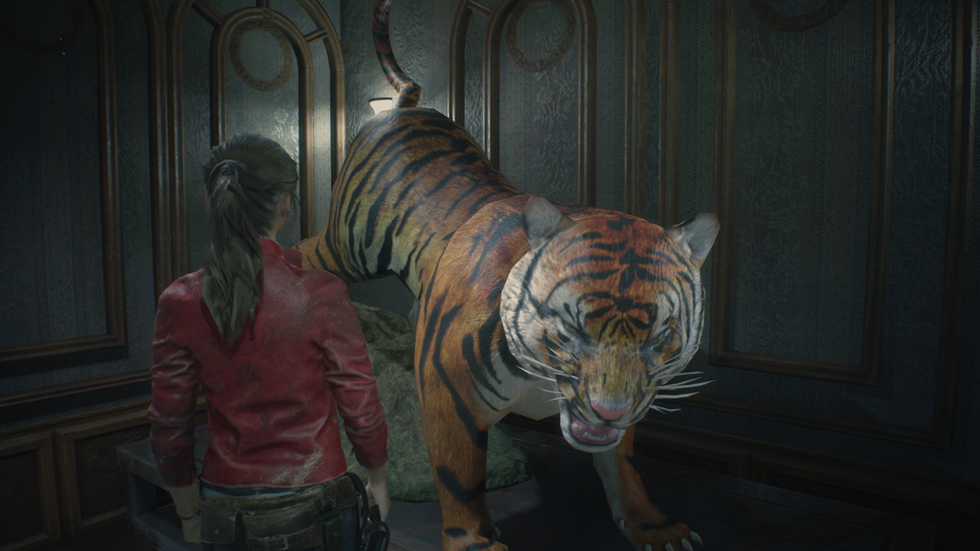 Ну и наша главная звезда - Тиран! Идейный наследник(ну, или плагиат) Т-800 и Т-1000, а так же Пирамидоголового из SH2, Бобби Берроуза из Clock Tower и т.д..И Немезиса из трёшки. Прекрасно воспитан, терпелив и сдержан. Умеет брутально ходить и медленно бить, стильно выглядеть, хорошо слышать, лазать по лестницам, ездить в фуникулёре (судя по всему), не умеет прыгать, убирать столы и стулья, мешающие добраться до главгероя, пару раз ломает стены отсылки ради. Воспитание так же мешает ему врываться в сейврумы и некоторые тупиковые комнаты. Силу использует только в нужных сюжету моментах, в остальных случаях про нее начисто забывает. Искусственно удлинняет время прохождения. Однако же функцию неутомимого преследователя выполняет на ура, заставляет прислушиваться к окружению на предмет звука его шагов, и вообще вести себя тише. Оперативно приходит на выстрелы, не то что полиция в этой стране. В целом, я хорошо понимаю, чем он так понравился многим игрокам.