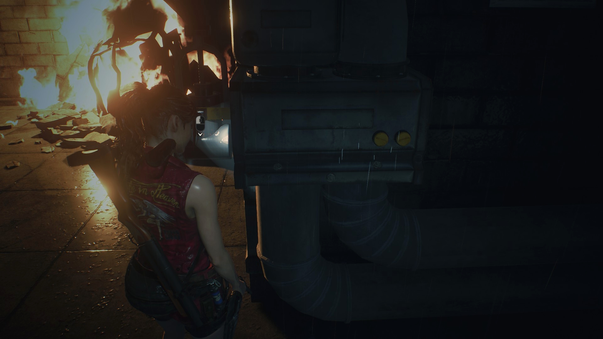 Что до атмосферы, так тут, други мои, ремейк на голову выше оригинала, что вполне логично. Порадовало, что участок сделали мрачнее и темнее исходного, следуя удачному примеру REmake, который так же был затемнен и омрачен, что положительно сказалось на антураже. Деревянный пол скрипит, пакеты шуршат от ветра, доски трещат, двери скрипят - всё в этой игре пытается тебя обмануть и вызвать ложную тревогу. Это здорово. Переделанные локации прилегающей территории находятся теперь совсем не там, где вы привыкли лицезреть их, играя в оригинальную игру, но узнаются моментально, грея душу вызываемыми ностальгическими чувствами. Канализация теперь выглядит как канализация, а не как подземелья готического замка. Грязная, вонючая(наверное), мокрая. Здесь вот прям совсем не хочется задерживаться. Улыбнул ракурс камеры при открытии дверей рычагом и рукояткой, навевает воспоминания об аналогичных сценках в RE2-98. Очень многое здесь отсылает к своей прародительнице, внимательный взгляд и здесь и там выцепляет до боли знакомые элементы. Это подлая игра на ностальгических чувствах, но это работает именно так, как должно. Однако, почти сразу замечаешь, что игровой мир стал меньше, в нем не ощущается множества новых элементов. Следует вновь обратиться к примеру REmake - там игровой мир и контент нехило так расширили, добавив новые локации, предметы, паззлы. Здесь же из новых локаций только приют. Звуковое оформление тоже удалось на славу - все эти шорохи и скрипы окружения, шаги сеньора Ихо, выстрелы, взрывы, рёв ликеров и зомби - всё на высшем уровне. А вот из музыки запомнились разве что референсы оригинальных мелодий да темы боссов. Впрочем, на третьем прохождении я врубил оригинальный саунд из 1998-го, и он отлично лёг на игру. Очень уместная функция.