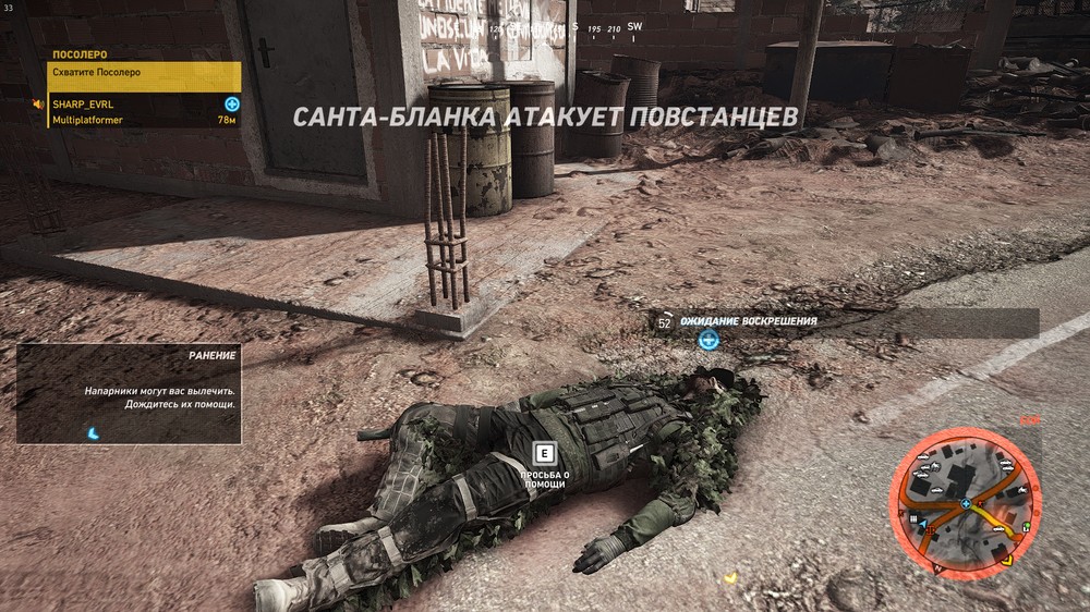 6. После того, как вас «валят на землю» вы не можете двигаться. К примеру, буквально вчера, я играл в прошлую часть, под названием Tom Clancy's Ghost Recon: Future Soldier, и там, если вас валят, вы можете ползти, чтобы как минимум убраться из под огня, дабы союзнику было проще вас поднять. Тут такого нет. Вы просто лежите и ждёте. Причем частенько ваши конечности находятся под текстурами. И к слову, если время истекло, вы можете лежать и ждать, а можете воскреснуть, и вот это просто ад. Вы можете мгновенно появиться рядом с напарником, а может включиться экран загрузки, после чего вы появитесь у чёрта на куличках. Как эта система работает — я так и не понял.
