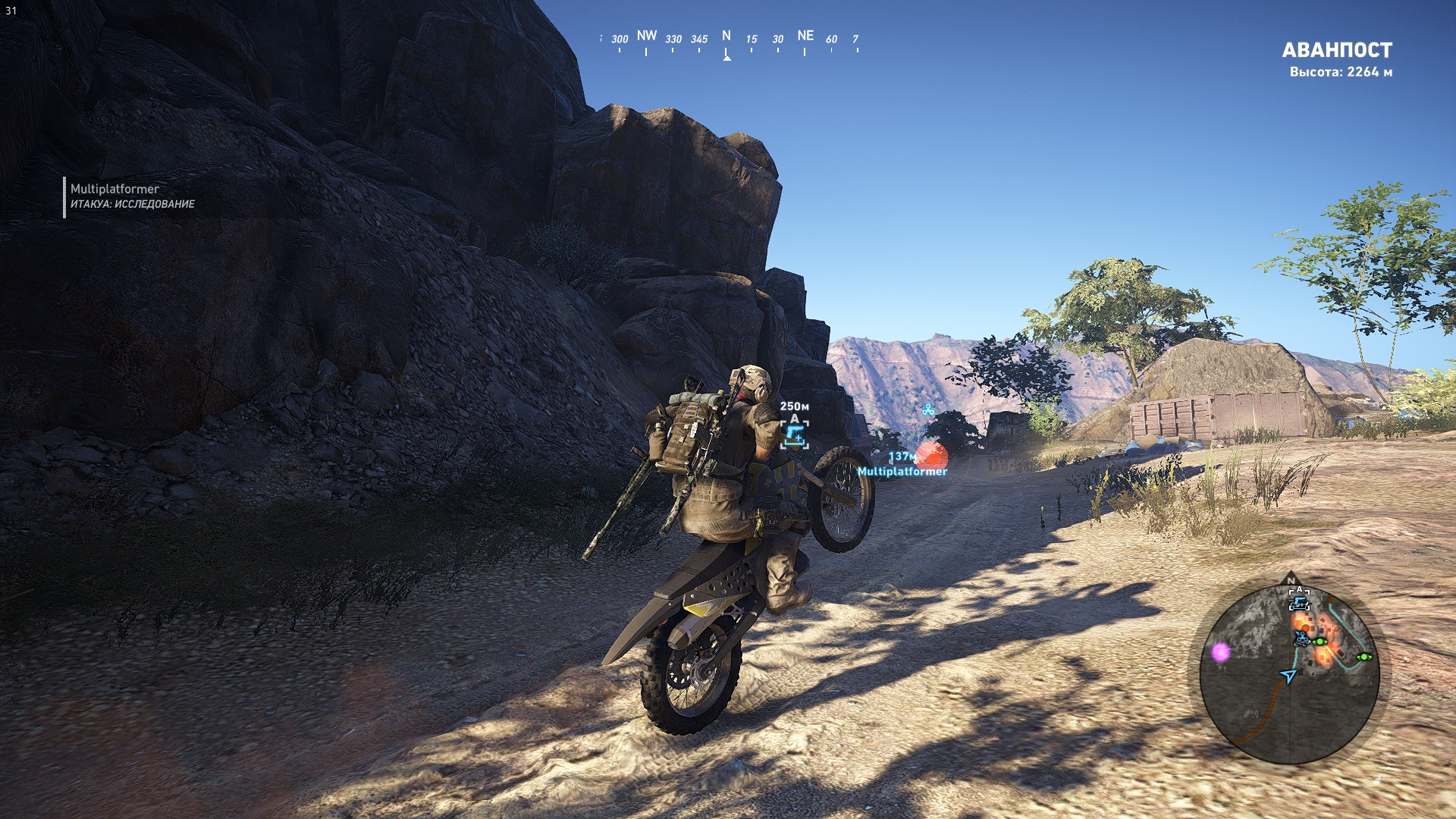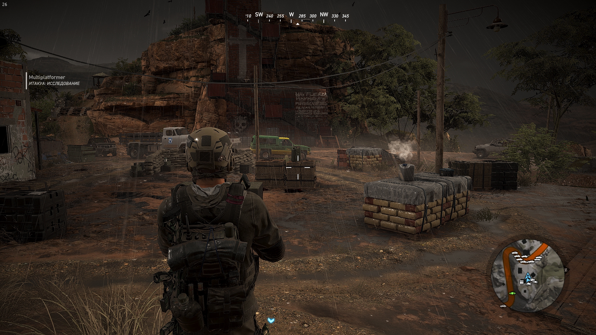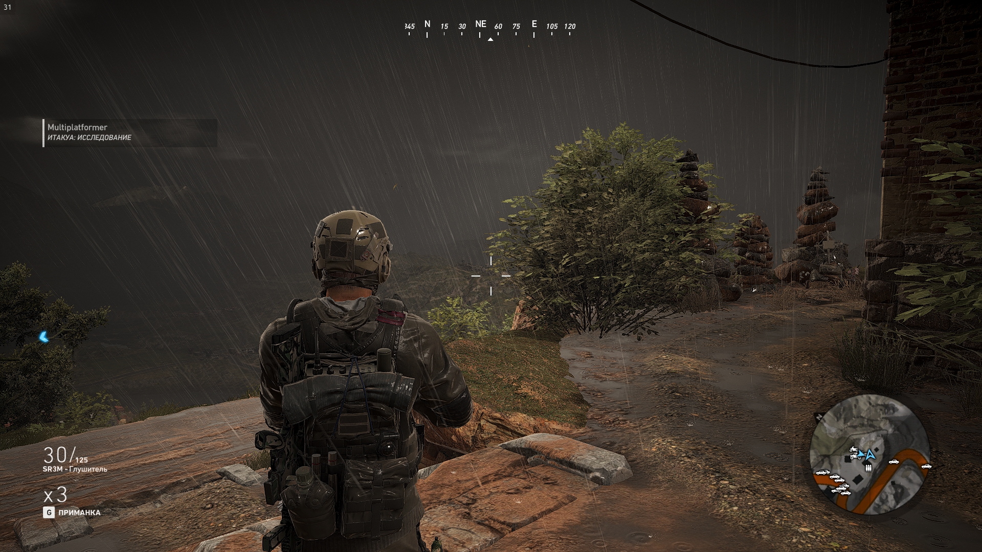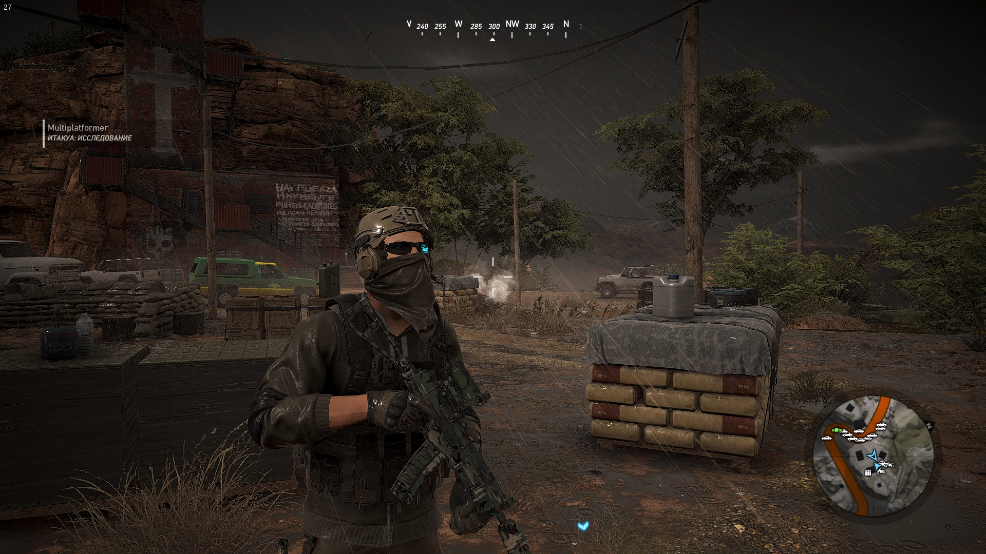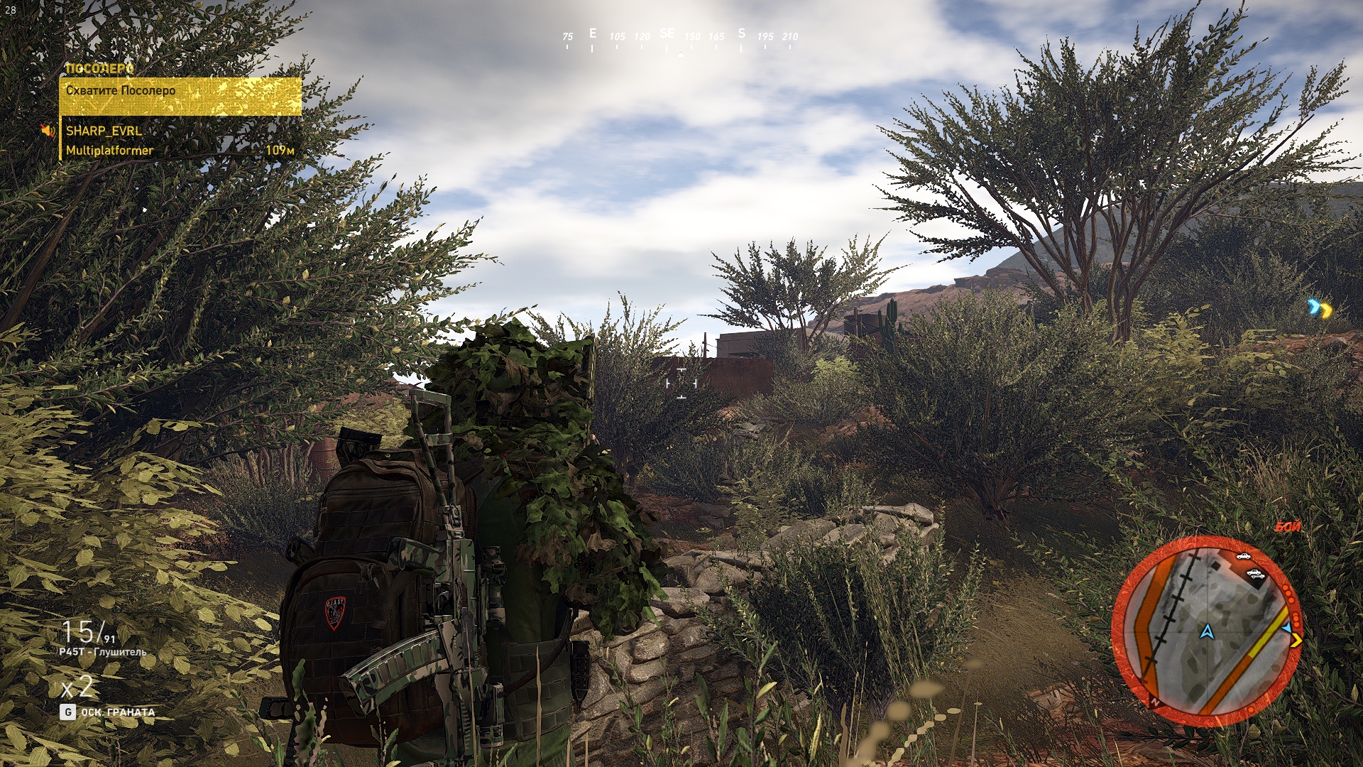 7. Стелс. Да, сам не верю, что это говорю, но он здесь ну просто отвратительный. Даже в Метро стелс работает лучше, чем здесь, в игре, про отряд-призрак. В прошлой части, Tom Clancy's Ghost Recon: Future Soldier, которую я уже приводил в пример, у нас были маскировочные костюмы, которые становились практически невидимые, у нас было крутое снаряжения, мы играли за настоящий отряд-призрак. Здесь же у нас мало того, что команда выглядит как бомжи (футболка да бейсболка), так ещё и сам стелс ну просто отвратительный. Враг то в упор вас не видит, то палит за милю, причем может спалить вас спиной! Красота то какая. Так же очень отвратительная система ближнего боя. В прошлой части, подкрадываясь к врагу со спины, ваш герой замедлял ход (чтобы тише идти), наводил оружие в сторону головы, на случай, если обернётся — вышибить мозги, и мог спокойно задушить. Прекрасная механика. Здесь же такого нет, тупо кнопка удара, которая частенько не срабатывает. Враг же при этом вас слышит за спиной, а может чует, хрен его знает, и через 2 секунды резко оборачивается. Просто супер. И ещё несколько моментов, которые тупо не работают. Как я уже сказал, в прошлой части были костюмы-невидимки, на подобии костюма Крайзиса. Здесь у нас есть возможность надеть маскхалат, но толку от него ноль. Чистый визуал, скрытности вам он не даёт вообще. Тоже самое касается и кустов. Я не знаю почему, но кусты и такой костюм не даёт никакой скрытности вообще. В том же Splinter Cell каждый костюм имел какие-то свойства. Здесь, повторюсь, костюмы — чистый визуал и не более. По крайней мере в кооперативной/одиночной игре. Я уж молчу об отсутствии каких-либо нововведений в этот игровой процесс, сплошная деградация на фоне прошлой части, ужас. Ну и ещё одна мелочь, которая в этом плане огорчила: спрятавшись за углом, вы не сможете тихо убрать врага. Только стрельба, в рукопашную схватить нельзя.